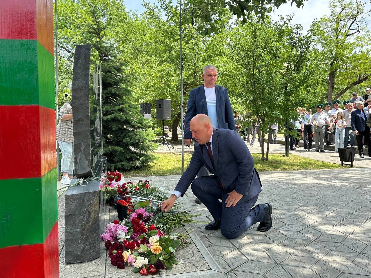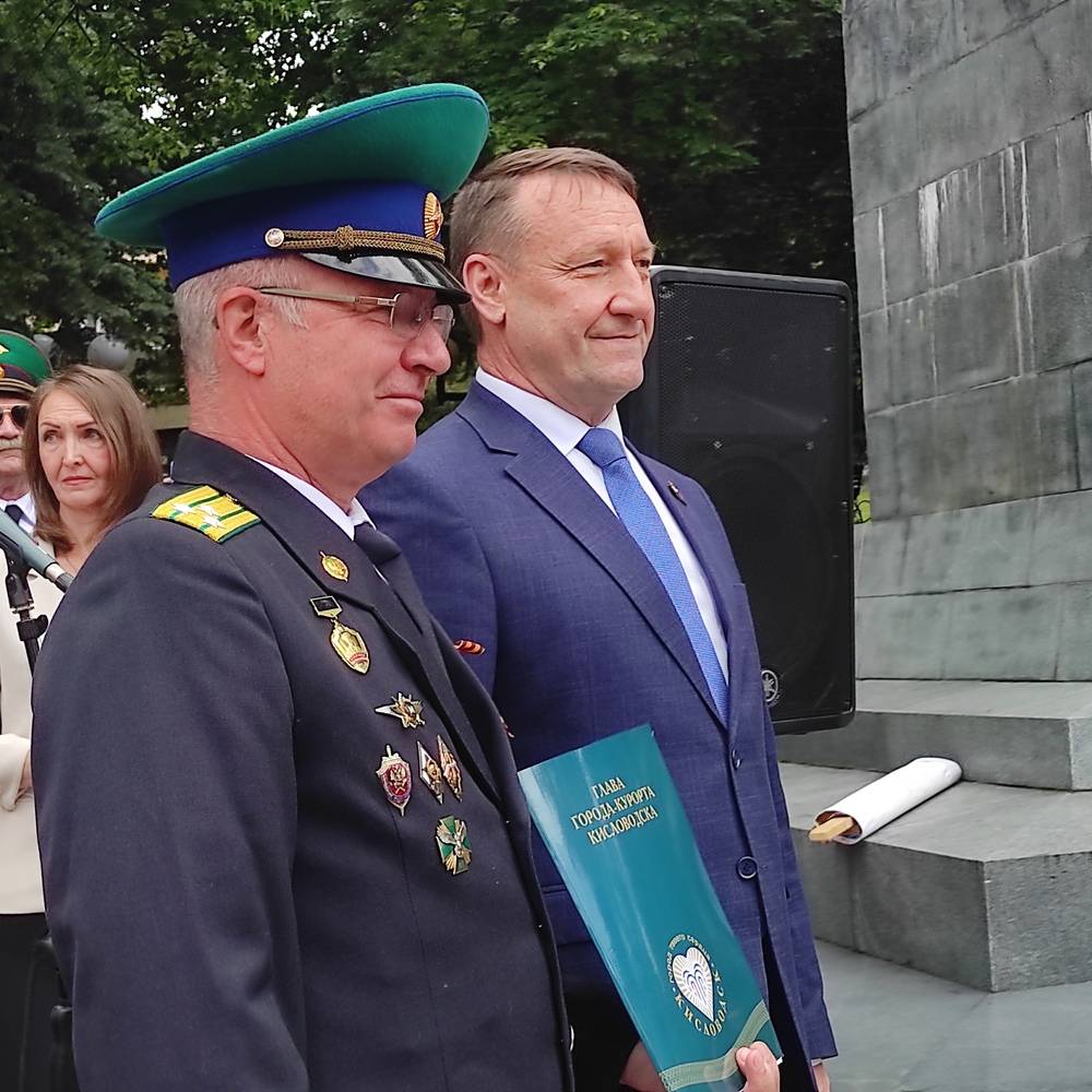 В Георгиевске к памятным мероприятиям присоединились члены Местного отделения РО РВИО СК в лице Стрельникова А.М., председателя Думы Георгиевского муниципального округа. Александр Михайлович поздравил с праздником пограничное братство Георгиевского округа и возложил цветы к мемориалу «Пограничникам всех поколений», почтив память тех, кто стойко защищал границы Отечества перед лицом врага.