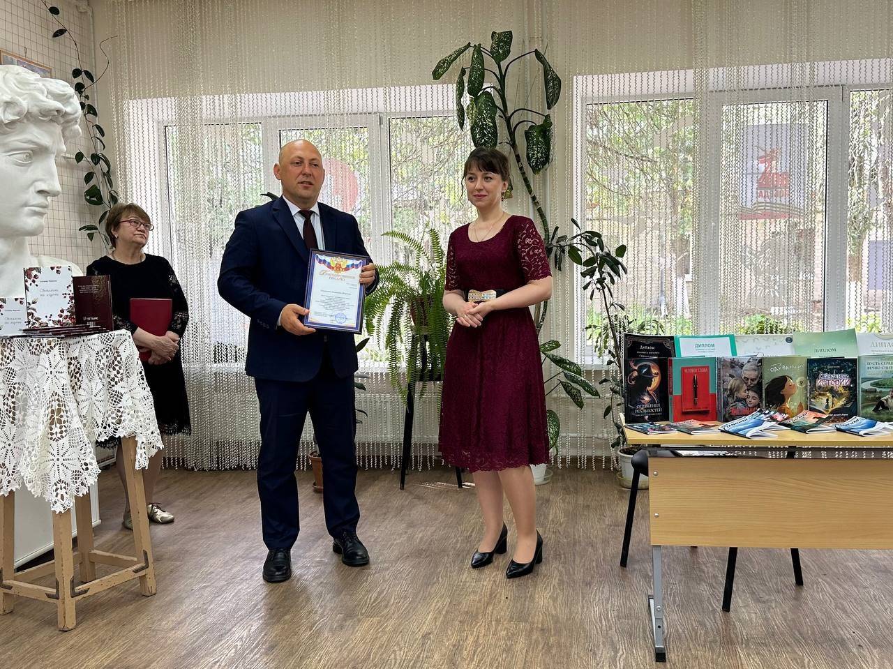 26 мая 2025 г. в Георгиевске состоялся творческий вечер талантливой поэтессы, жительницы города Е.И. Морозовой. В организации мероприятия приняли участие члены клуба «Юный патриот» Местного отделения Ставропольского регионального отделения Российского военно-исторического общества (РО РВИО СК) в Георгиевском муниципальном округе (председатель – Алексина Е.Ю.). На встрече также присутствовал Стрельников А.М., председатель Думы Георгиевского муниципального округа, член РО РВИО СК. Александр Михайлович вручил землячке благодарственное письмо и поздравил от имени Местного отделения РО РВИО СК в Георгиевском муниципальном округе с выходом очередного сборника.