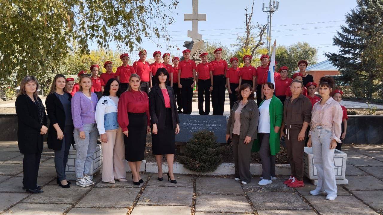 30 сентября 2024 г. станице Расшеватской Новоалександровского муниципального округа состоялся митинг в честь Дня воссоединения Донецкой и Луганской Народных Республик, Запорожской и Херсонской областей с Российской Федерацией. Одним из его участников стала Фролова И.В., заместитель директора МКУК «Расшеватский СДК», член РО РВИО СК. По завершении торжественной части, участники мероприятия почтили минутой молчания память погибших воинов и мирных жителей и возложили цветы к Вечному огню Братской могилы.