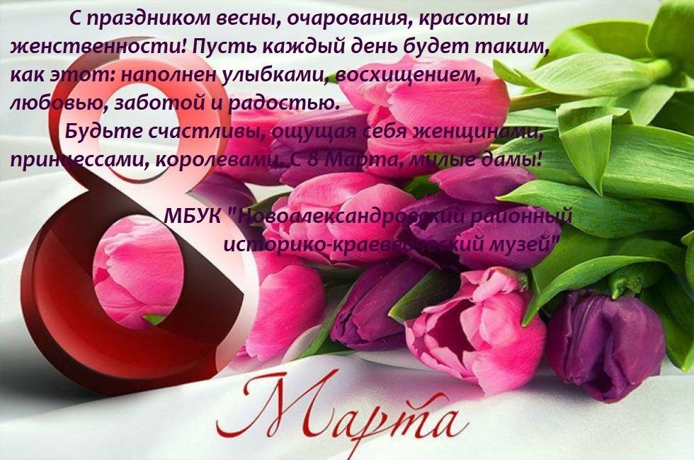 Мы желаем всем женщинам нашей страны всего самого доброго, светлого и прекрасного. Вы хрупки и сильны одновременно, вы настоящие профессионалы своего дела, любящие жёны и заботливые матери. Пусть наши защитники – Ваши любимые мужчины вернутся целыми и невредимыми. Мирного неба над головой!