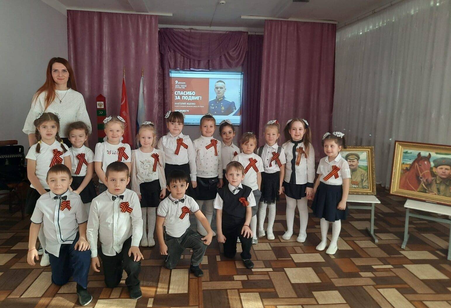 Воспитанникам рассказали об истории памятной даты, о важности знания истории своей страны, о Героях разных поколений. Сотрудники музея поговорили с детьми о значении слов «Герой», «подвиг», «защитник», «Отечество».