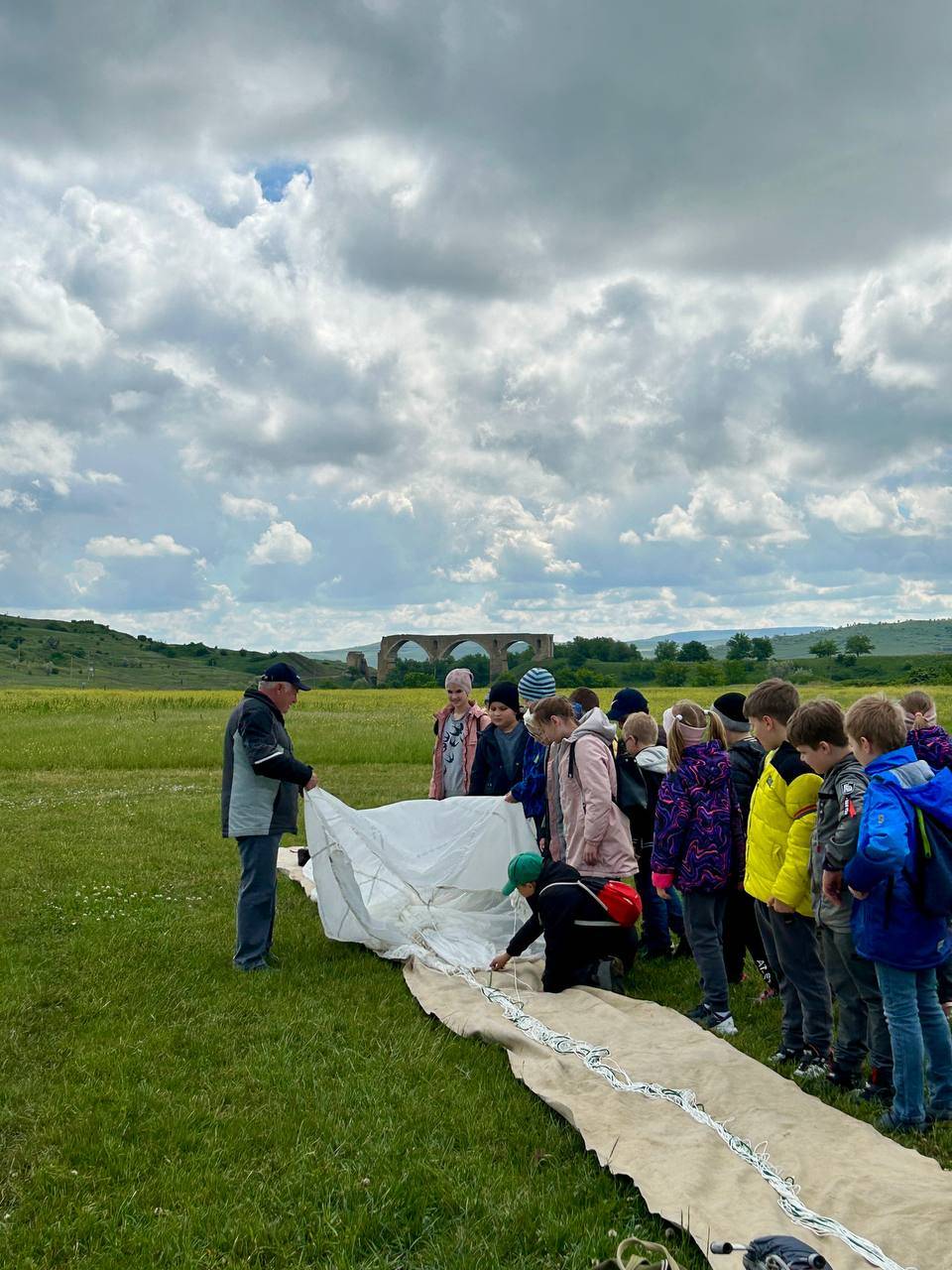 Ребята побывали у памятника Никифораки Н.Е., на железнодорожном вокзале г. Ставрополя, где смогли посетить зал ожидания и перрон, проследовали до разрушенного Новокавказского моста, расположенного в районе х. Верхнеегорлыкский. В завершении экскурсии школьники прибыли на аэродром Авиационного спортивного клуба Ставропольского края (руководитель – Кожевников И.В., член РО РВИО СК), где познакомились с историей самолета АН-2, посидели в кабине пилота и вживую увидели, как выглядит парашютное снаряжение, узнали, каких видов бывают парашюты и как они выглядят в собранном и развёрнутом виде.