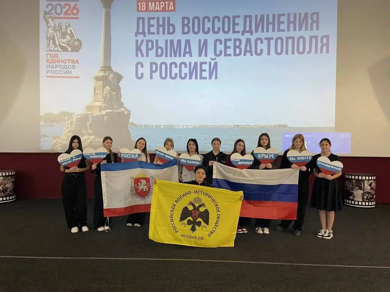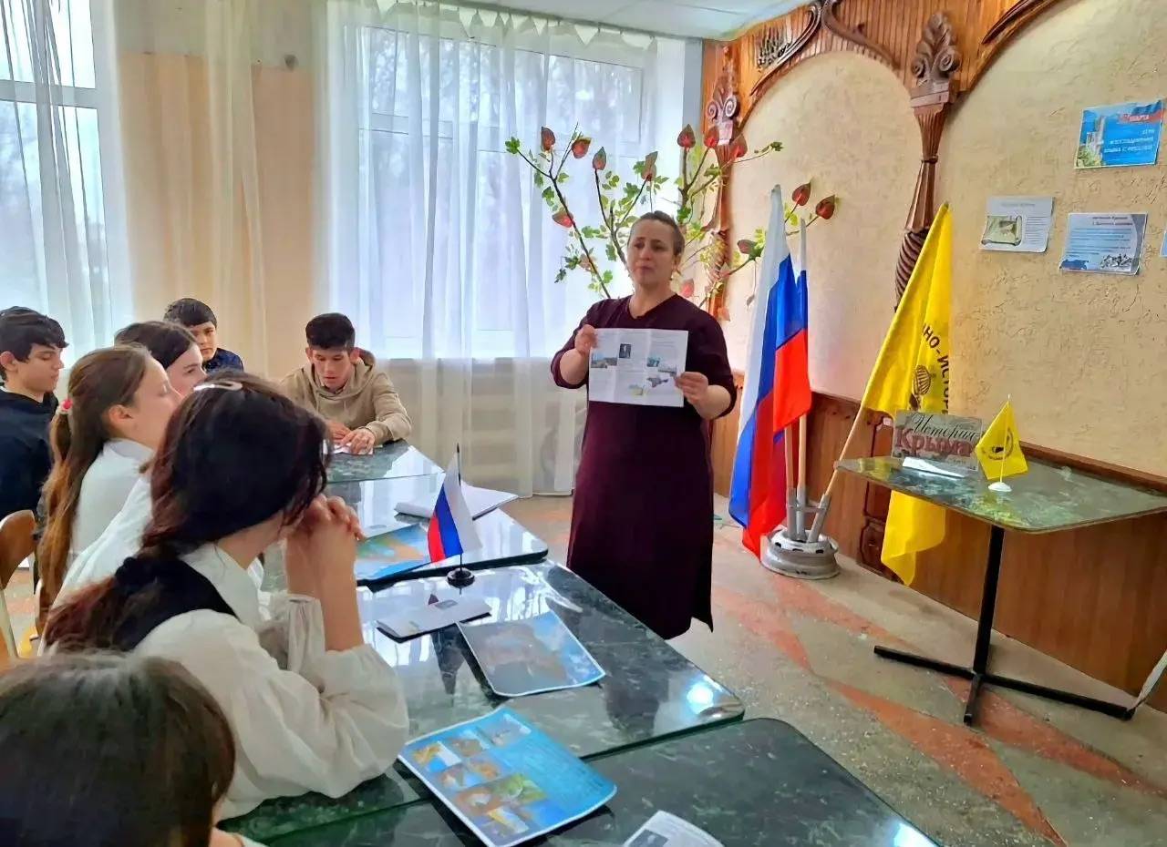 В преддверии празднования 12-й годовщины воссоединения Крыма с Россией активисты Грачёвского (председатель – Степаненко Н.И.) и Курского (председатель – Жулина Г.В.) Местных отделений Ставропольского регионального отделения Российского военно-исторического общества (РО РВИО СК) провели просветительские мероприятия для школьников.