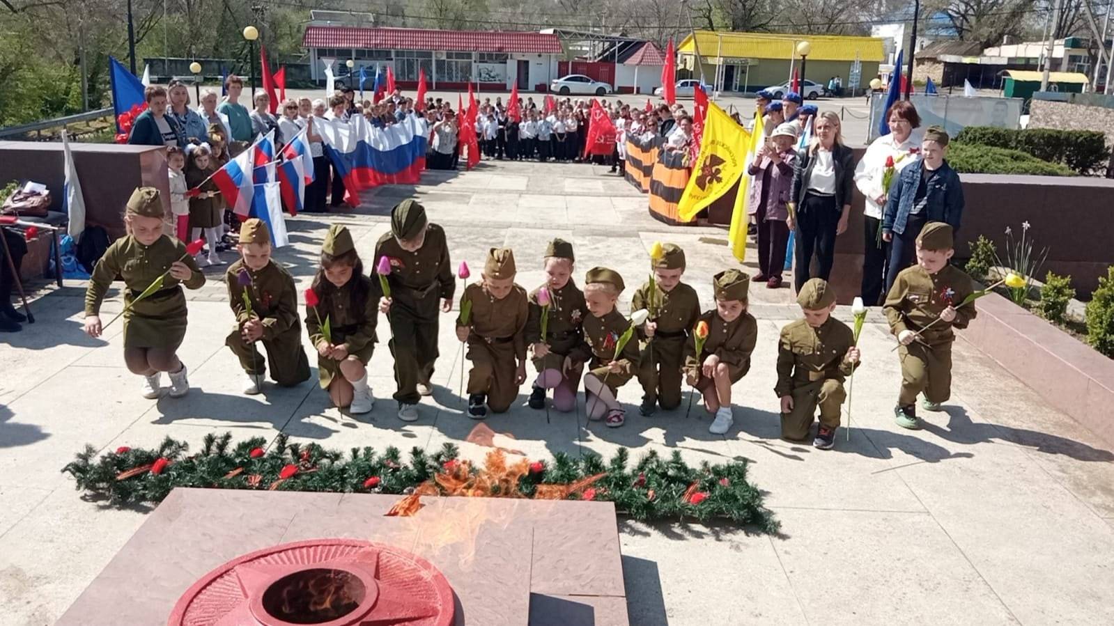 В преддверии великого праздника Дня Победы члены Местного отделения Ставропольского регионального отделения Российского военно-исторического общества (РО РВИО СК) в Минераловодском муниципальном округе (председатель – Акопян М.Б.), педагоги МКДОУ детский сад №95 «Ласточка» г. Минеральные Воды Алиева Е.О., Холоднякова Т.Б., Алиева А.К. и Яшкина А.С. проводят ряд мероприятий, направленных на воспитание патриотизма у детей дошкольного возраста. Одним из таких мероприятий стала встреча с сотрудниками филиала №2 Детской библиотеки Минераловодского округа. Ребята познакомились с подборкой книг о Великой Отечественной войне, прослушали рассказ о маленьком эпизоде той поры. Завершилась встреча возложением цветов у памятника танкистам, освобождавшим город от немецко-фашистской оккупации. Минутой молчания дети и педагоги почтили память павших героев.