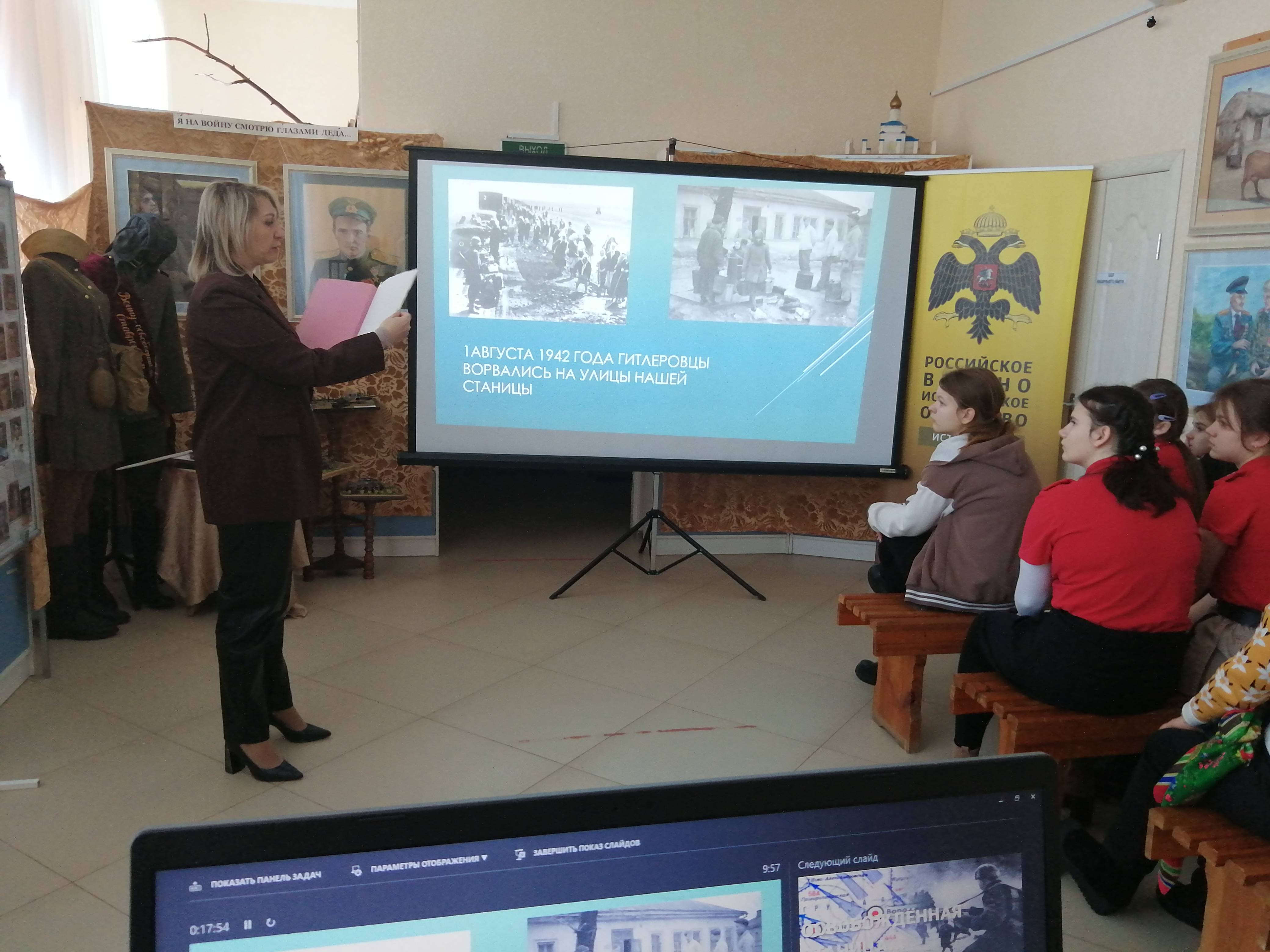 В рамках мероприятия школьники смогли в онлайн-формате пообщаться с племянником одного из воинов-освободителей – с К.Г. Фоминским. Он поздравил юных жителей района с 81-й годовщиной освобождения и выразил надежду на то, что память об освободителях станицы будет жить в сердцах будущих поколений.