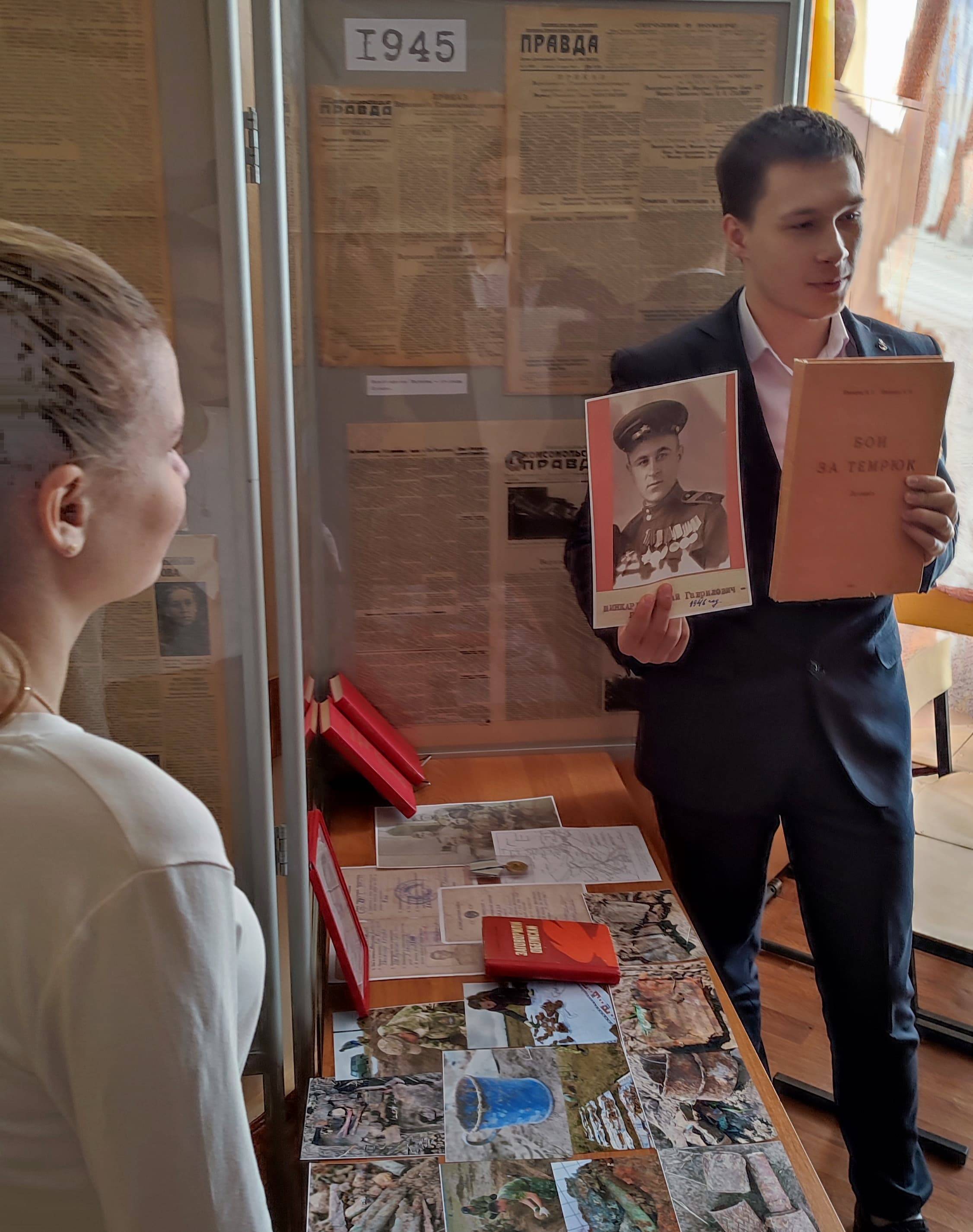 В память о мужестве и героизме солдат сотрудники музея посетили братские захоронения воинов-освободителей на пер. Братском и в центральном городском парке, а так же место гибели танкистов 140-й танковой бригады.