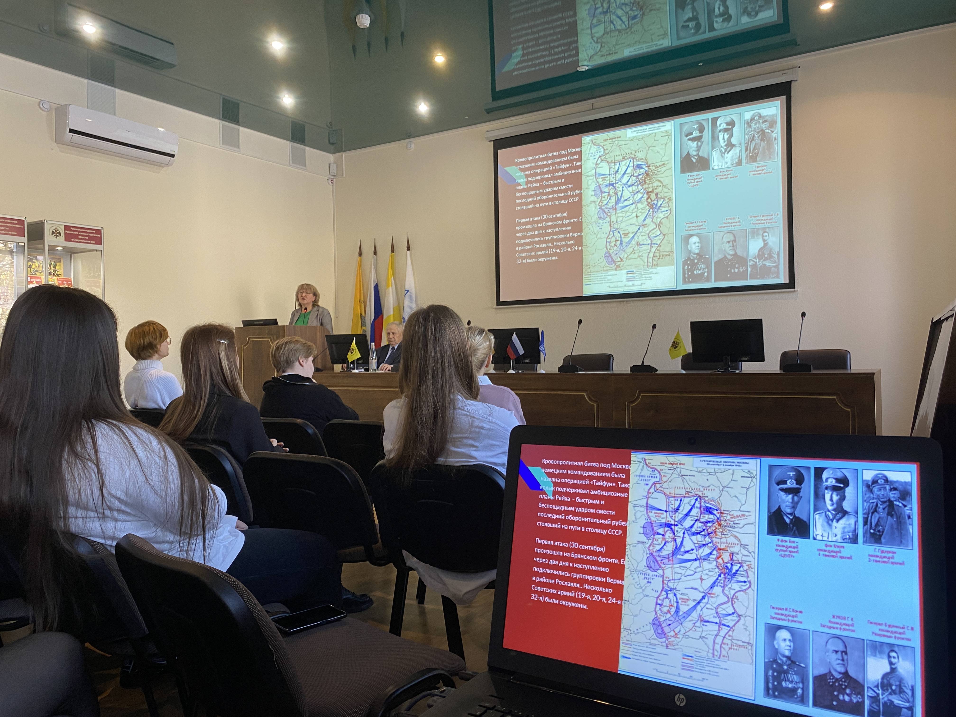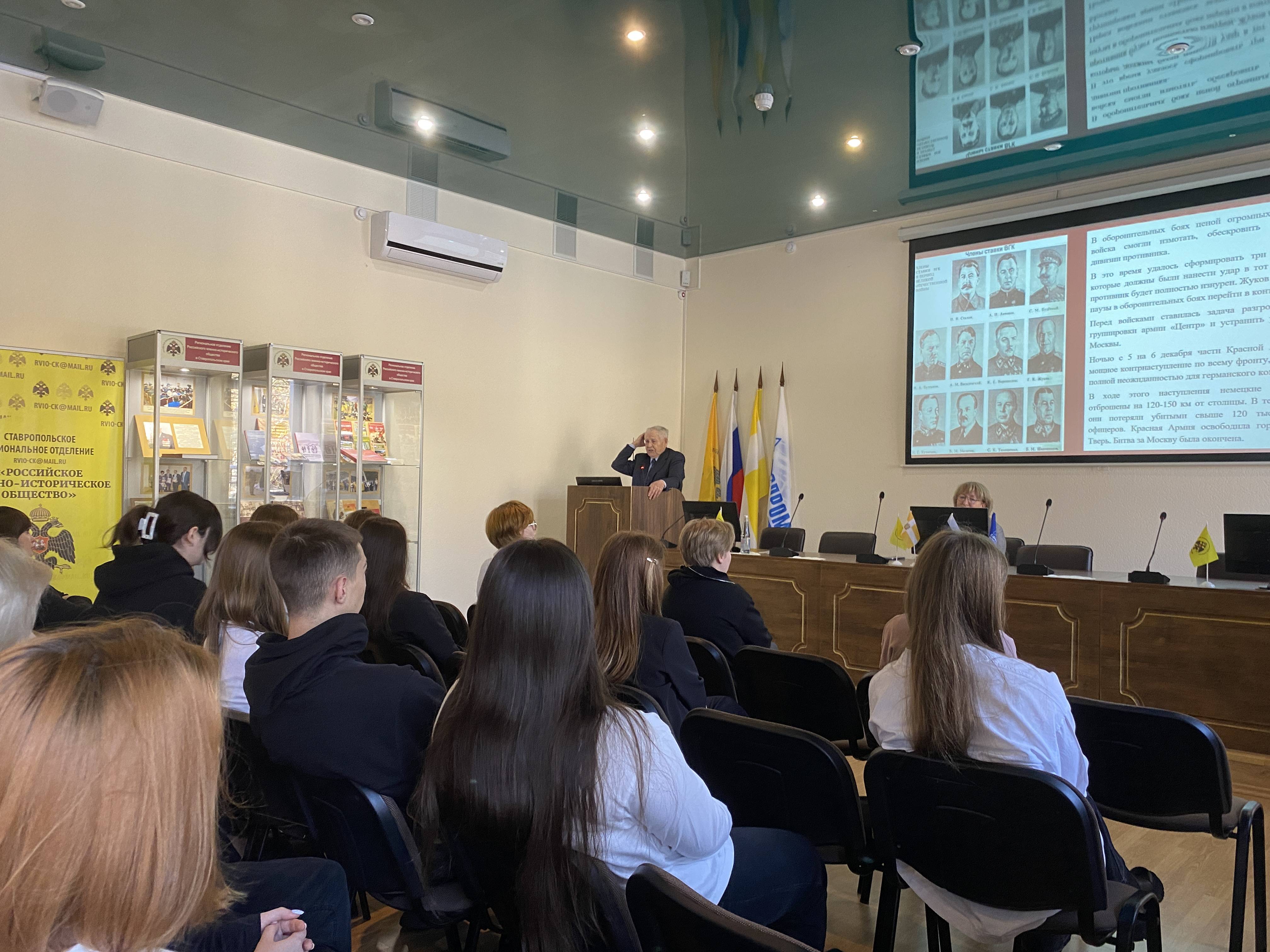 14 декабря 2023 года в конференц-зале Регионального отделения Российского военно-исторического общества в Ставропольском крае (РО РВИО СК) состоялось заседание форум-площадки военно-исторических коммуникаций «Региональная военная история» в формате круглого стола на тему: «Герои Отечества 1941 года: отстоявшим Москву посвящается».