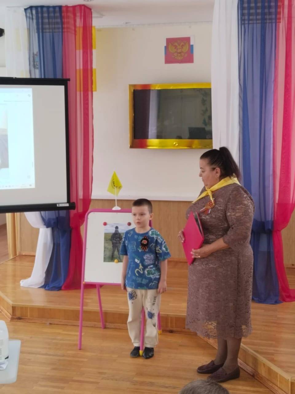 Не остались в стороне и самые юные жители края. Для воспитанников подготовительных групп МБДОУ «Детский сад №20» ИМОСК был проведён урок мужества «Время выбрало нас». Старший воспитатель Кривенко Г.В., член Местного отделения РО РВИО СК в Изобильненском муниципальном округе (председатель – Щендригин Н.И.), рассказала детям о важности сохранения исторической памяти и уважения к прошлому нашей страны. Мероприятие было направлено на формирование у ребят чувства патриотизма и осознания того, что защита Родины – это долг каждого гражданина.