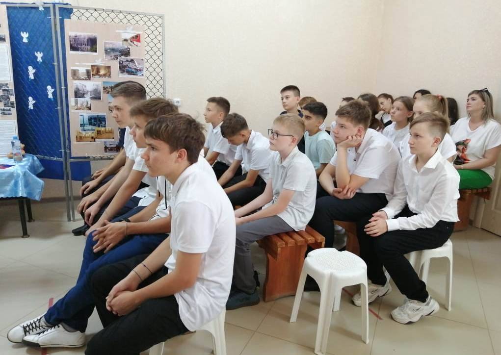 Младший научный сотрудник, член РО РВИО СК Герасимова М.Ф. раскрыла участникам мероприятия хронологию сентябрьских событий, прокомментировала новостные видеоролики тех дней о теракте и штурме школы силами спецназа, представила небольшую экспозицию «Цветы и крест в ладошке детской…», где школьники увидели фотографии и схему школы №1 в Беслане до и после теракта, фотографии участников трагической линейки. Учащиеся узнали о судьбах заложников после пережитого теракта.