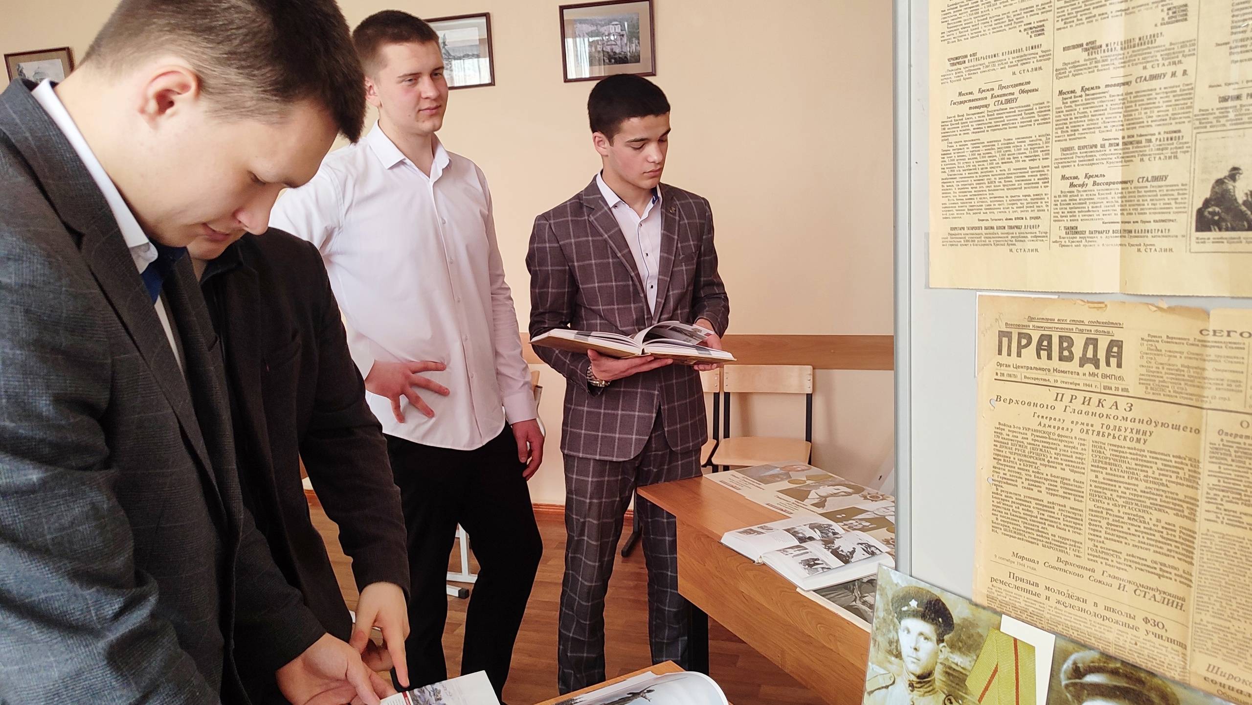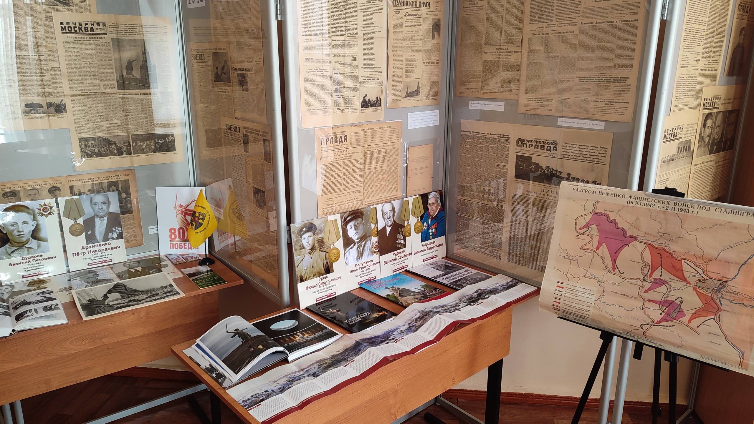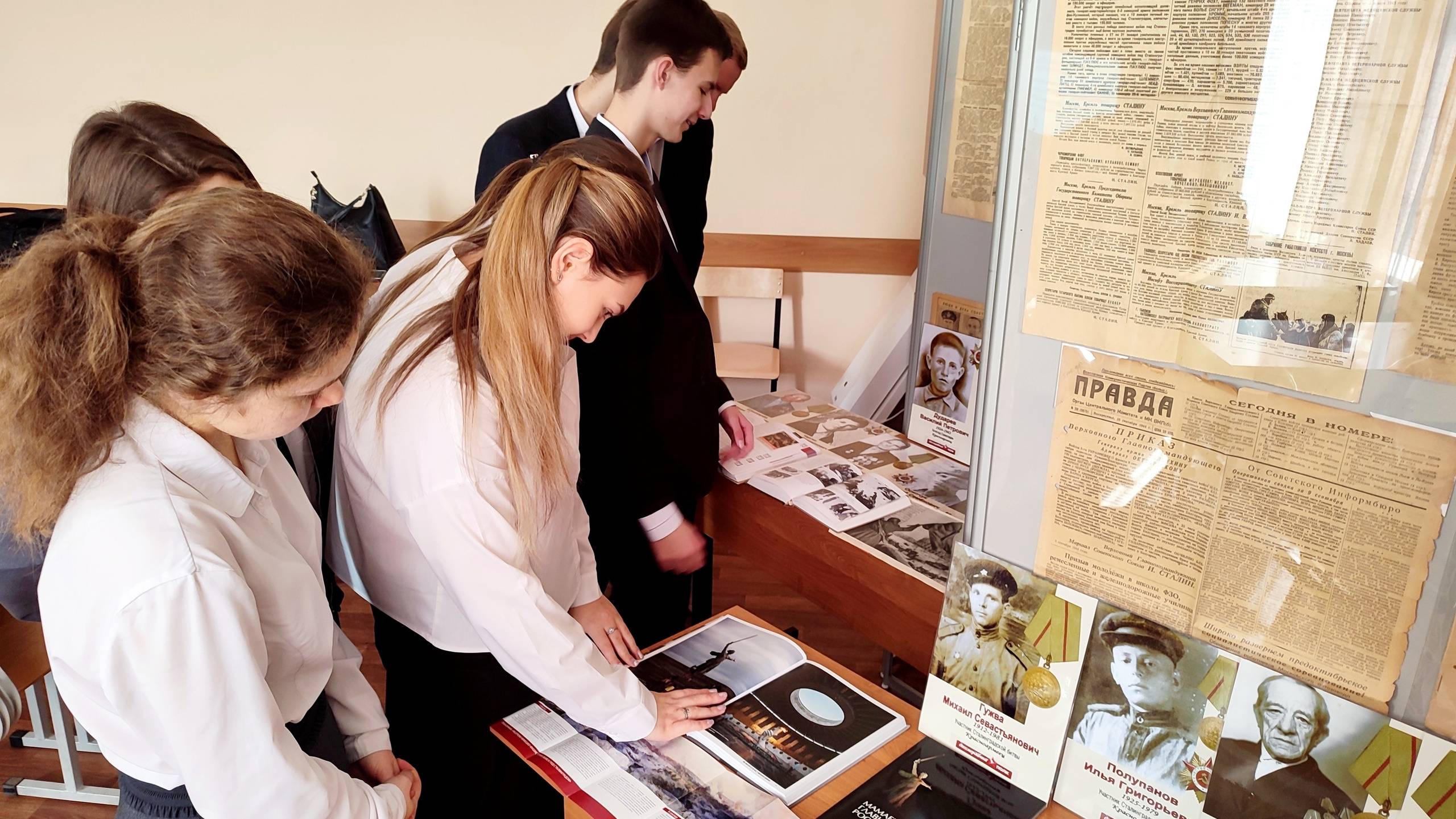 В кабинете истории и краеведения была размещена выставка, приуроченная ко Дню воинской славы России – день разгрома советскими войсками немецко-фашистских войск в Сталинградской битве (2 февраля). Её посетители могут ознакомиться с биографиями казьминцев – участников грандиозной битвы на Волге, посмотреть фильм, подготовленный при участии краеведов школы, увидеть подлинные газеты 1942-1943 годов со сводками Совинформбюро о Сталинградском сражении, книги, издания о музеях Волгограда, репродукции панорамы «Сталинградская битва».