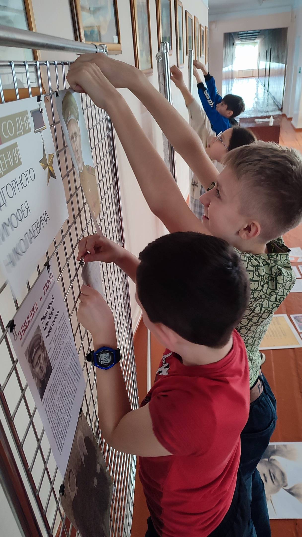 В этом месяце отмечаются юбилеи двух уроженцев с. Казьминского, Героев Советского Союза: 100 лет со дня рождения Героя Советского Союза Подгорного Тимофея Николаевича (1925-1944) и 120 лет со дня рождения Омельянюка Филиппа Трофимовича (1905-1966). Под руководством Котова С.Н., учителя истории и краеведения, председателя Местного отделения РО РВИО СК в Кочубеевском муниципальном округе, была подготовлена и смонтирована фотовыставка о жизни двух прославленных земляков. Активное участие в монтаже выставки принимали школьники. Ознакомиться с материалами экспозиции можно будет до конца февраля 2025 года.