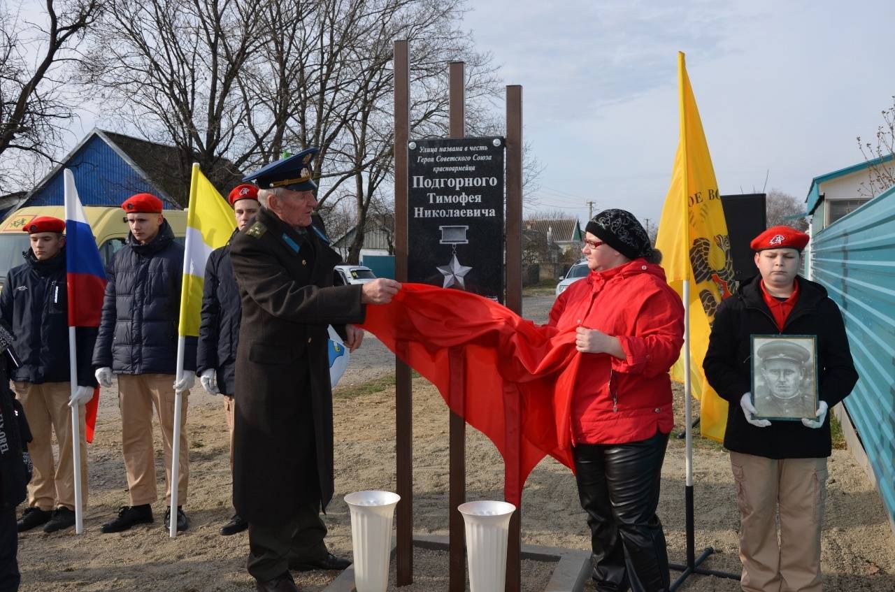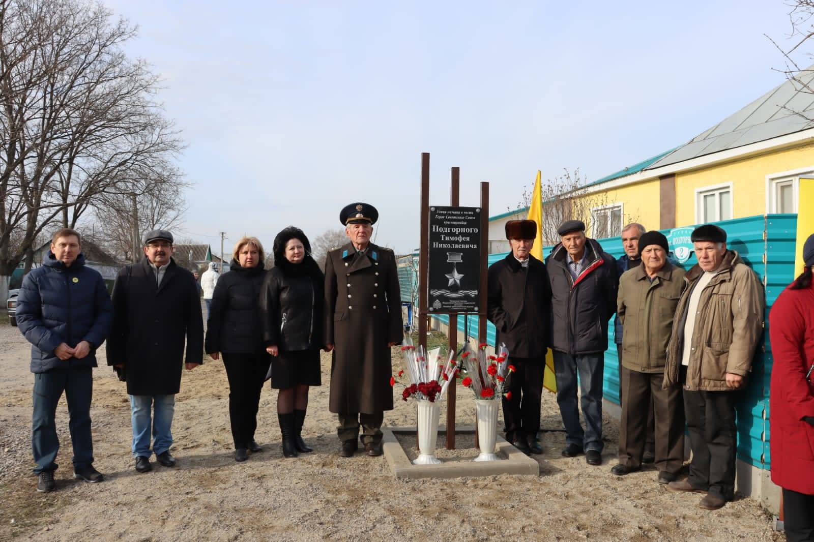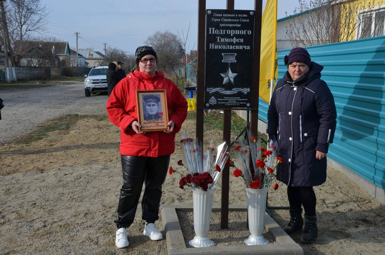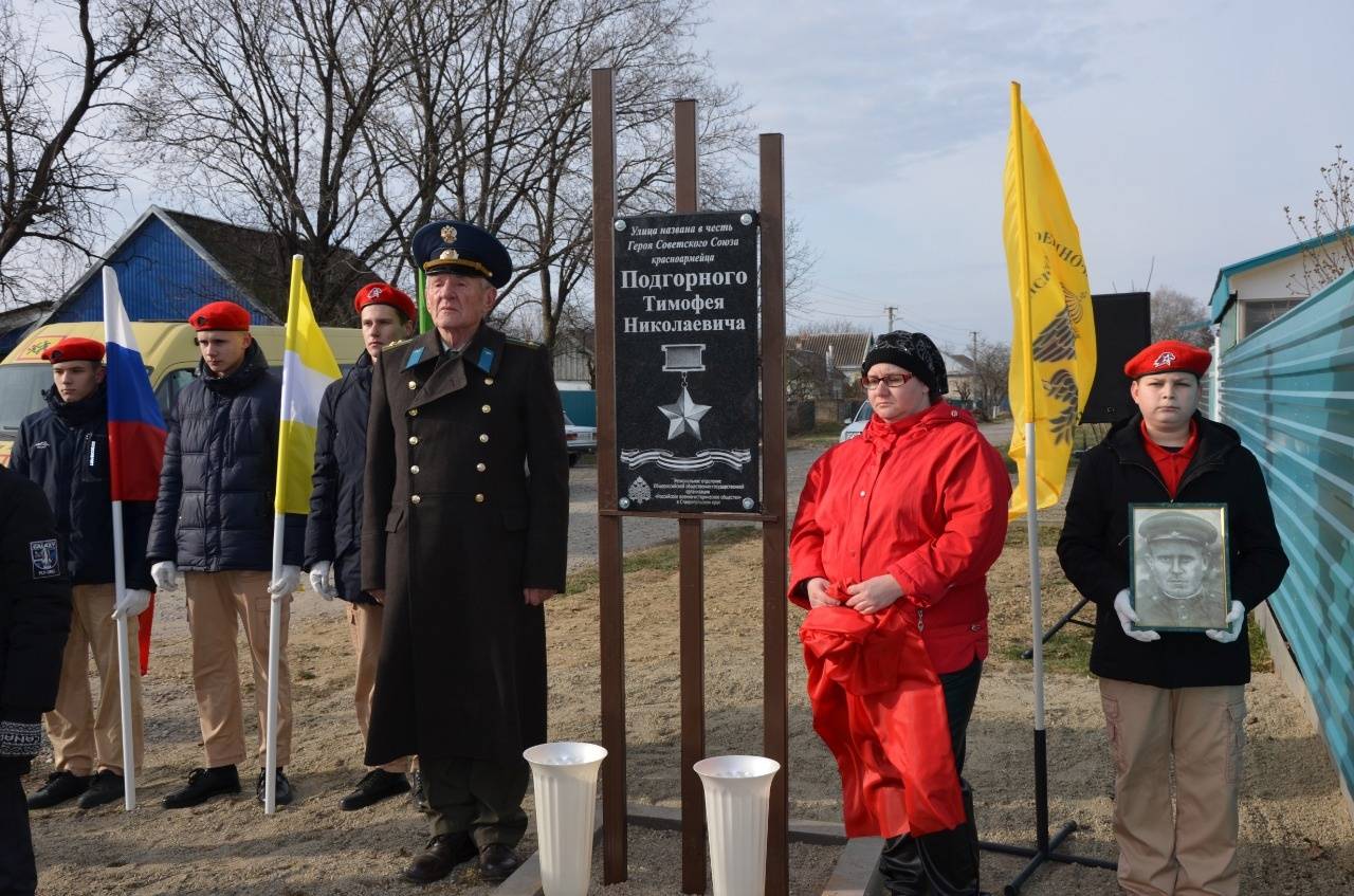 8 декабря 2022 года в рамках проекта Регионального отделения Российского военно-исторического общества в Ставропольском крае (РО РВИО СК) «Улица Героя» (председатель – Шевелев С.А., депутат Думы Ставропольского края, кавалер трех орденов Мужества, полковник) в селе Казьминском Кочубеевского муниципального округа состоялось торжественное открытие мемориальной доски Герою Советского Союза Подгорному Тимофею Николаевичу.