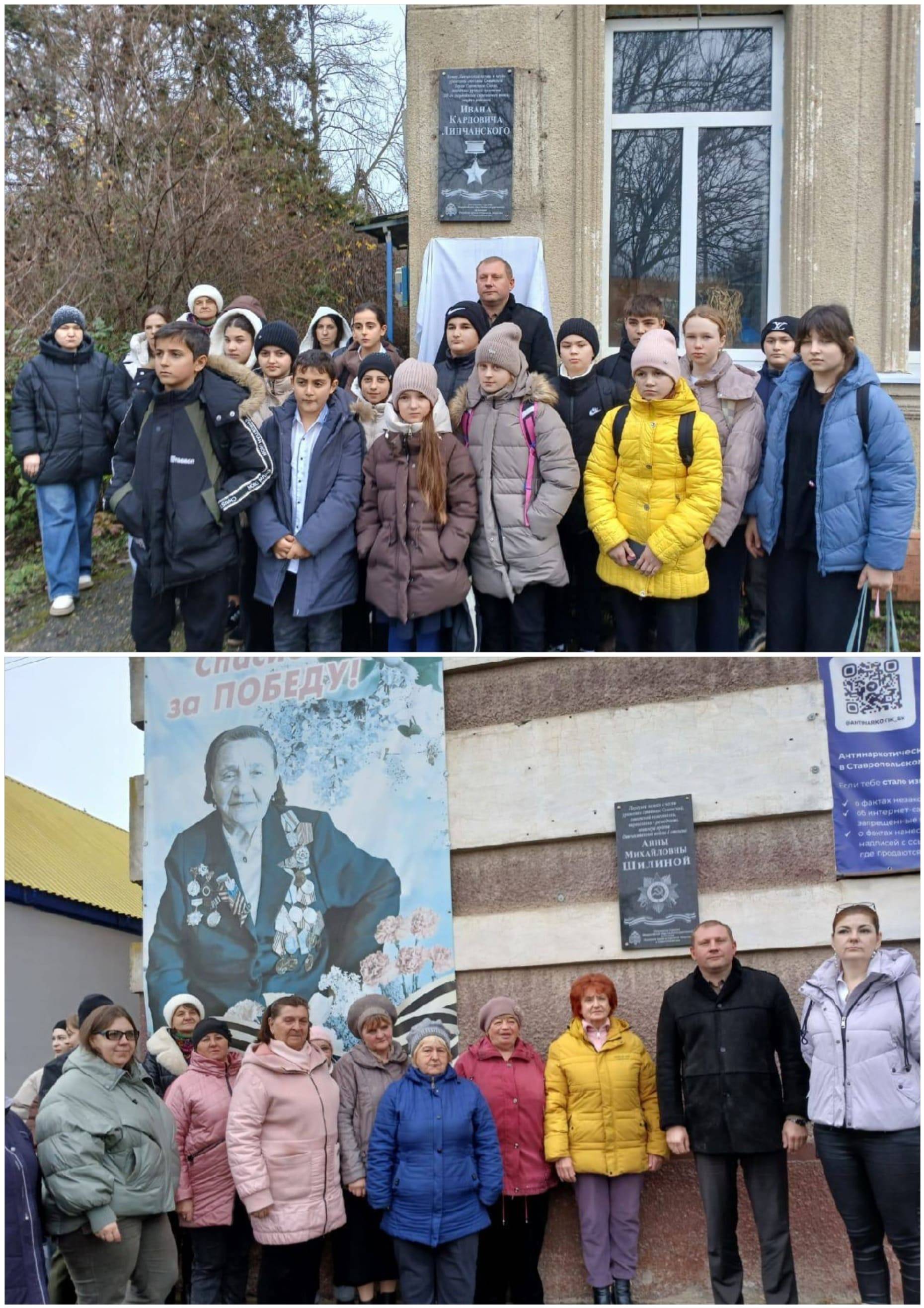11 декабря 2025 г. торжественные мероприятия прошли в Кировском округе (председатель Местного отделения РО РВИО СК – Новопашин Н.О.). В ст. Советской памятный знак был открыт на переулке, названном в честь в честь уроженки станицы, комсомолки, партизанки-разведчицы, кавалера ордена Отечественной войны I степени А.М. Шилиной. В х. Липчанском была установлена памятная доска в честь уроженца ст. Советской, Героя Советского Союза, наводчика ручного пулемёта 248-го Гвардейского Стрелкового полка, гвардии рядового И.П. Липчанского, имя которого и носит сейчас хутор.