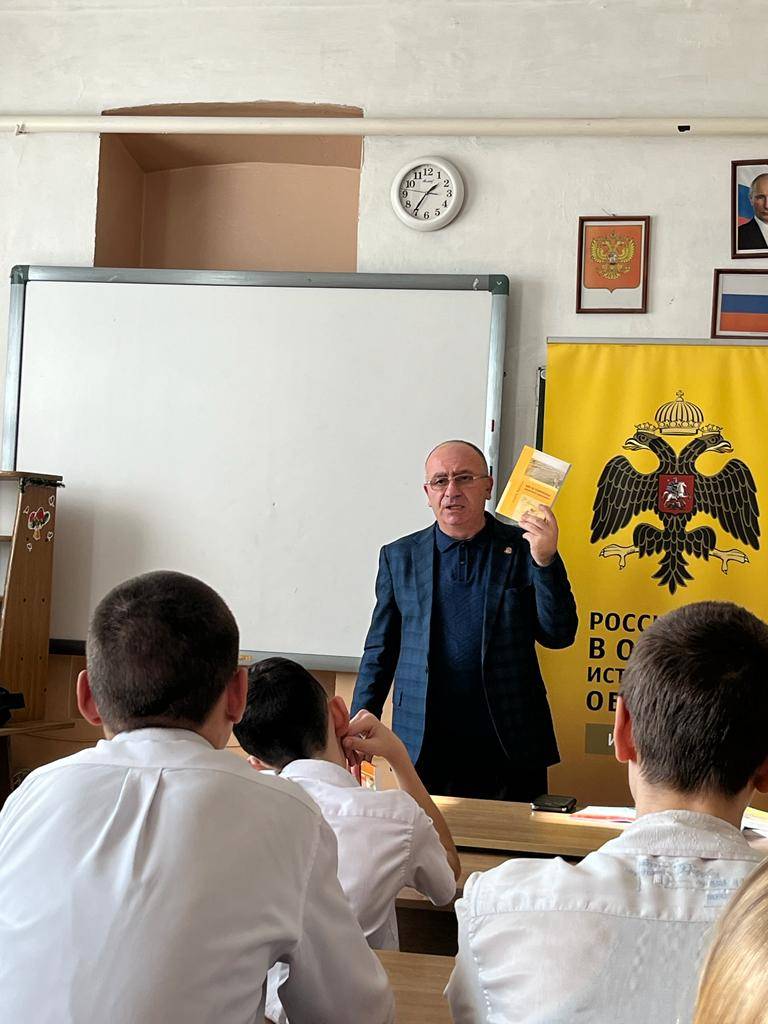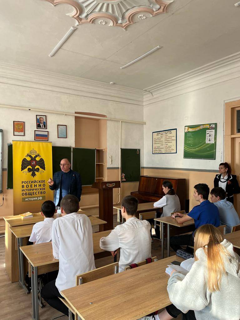Руководитель актива РО РВИО СК в Минераловодском муниципальном округе М.Б. Акопян провел урок Мужества для учащихся МКОУ СОШ №12 пос. Ленинский, посвященный героическим страницам истории освобождения родного города. Он рассказал о ходе боев за Минеральные Воды, о некоторых биографиях героев-освободителей. В ходе мероприятия он познакомил школьников с монографией А.В. Карташева, д.и.н., доцент, начальник Центра изучения истории медицины и общественного здоровья Ставропольского государственного медицинского университета, один из учредителей РО РВИО СК, которая посвящена боям на территории Ставропольского края в августе 1942 г. – январе 1943 г.