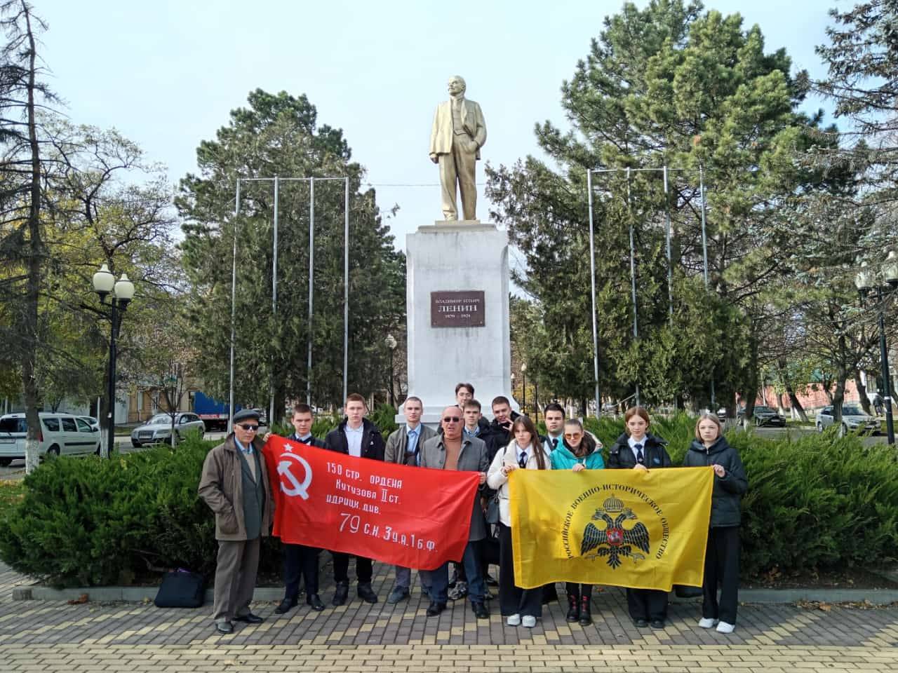 В день годовщины Октябрьской революции (7 ноября 1917 г.) и День воинской славы России (7 ноября 1941 г.) представители Местного отделения РО РВИО СК в Минераловодском муниципальном округе (председатель – Акопян М.Б.) встретились со студентами филиала ЧПОУ «Ставропольский кооперативный техникум» в г. Минеральные Воды: для них была проведена лекция, посвящённая этим памятным событиям отечественной истории, по завершении которой состоялось возложение цветов к памятнику В.И. Ленина. Почётным гостем мероприятия стал Мисюрин Николай Иванович, ребёнок войны.