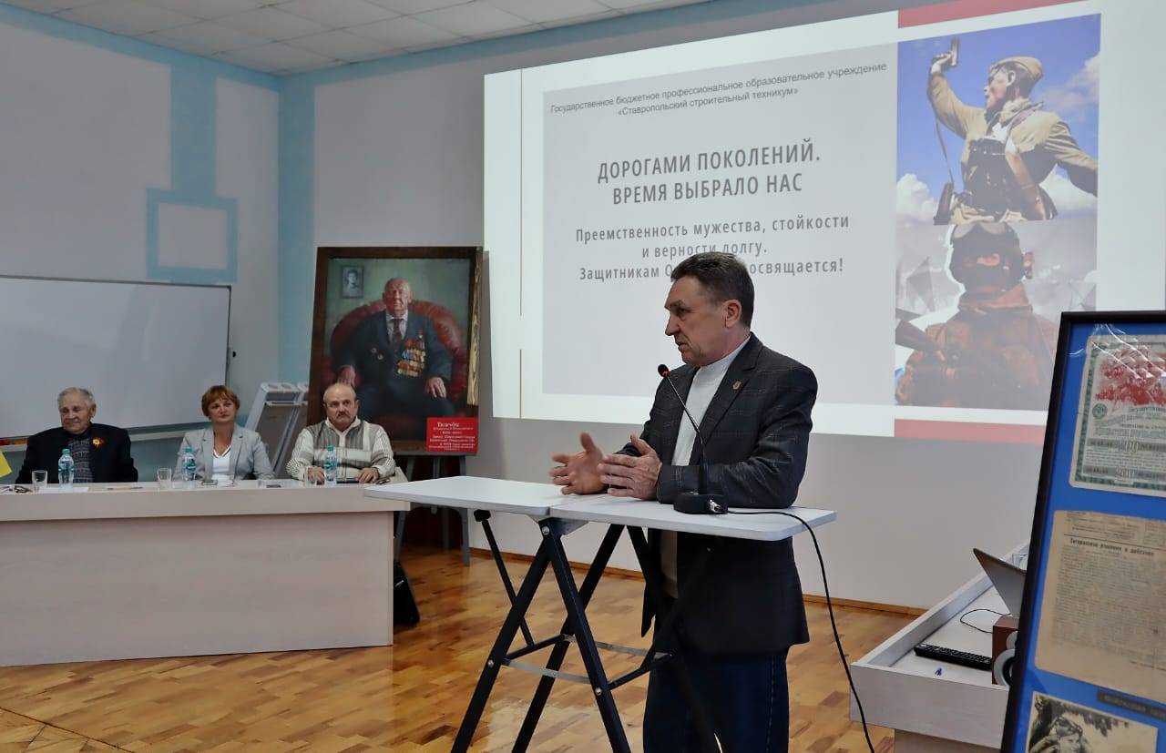 В связи с годовщиной этого памятного события представители Ставропольского регионального отделения Российского военно-исторического общества (РО РВИО СК) организовали и провели ряд мероприятий. Так, 7 ноября 2024 г. в Ставропольском строительном техникуме (ССТ) прошла конференция «Дорогами поколений. Время выбрало нас», посвящённая защитникам Отечества разных поколений и эпох. В организации мероприятия приняли участие преподаватели ССТ-члены РО РВИО СК: Печалова Л.В., д.и.н., председатель цикловой комиссии общих гуманитарных и социальных дисциплин, Почётный работник воспитания и просвещения Российской Федерации; Печалов А.К., к.и.н., Почётный работник воспитания и просвещения Российской Федерации; Новиков С.И., преподаватель истории, руководитель краеведческого кружка. В числе почётных гостей мероприятия так же были представители РО РВИО СК: Судавцов Н.Д., д.и.н., Почетный профессор Северо-Кавказского федерального университета (СКФУ), главный научный сотрудник отдела военной истории и патриотической работы Ставропольского государственного музея-заповедника (СГМЗ), один из учредителей РО РВИО СК; Мамасьян С.А., к.ф.н., профессор кафедры гуманитарных дисциплин Ставропольского краевого института развития образования, повышения квалификации и переподготовки работников образования; Борисенко Н.И., руководитель Ставропольского краевого отделения Всероссийской общественной организации «Боевое братство», один из учредителей РО РВИО СК.