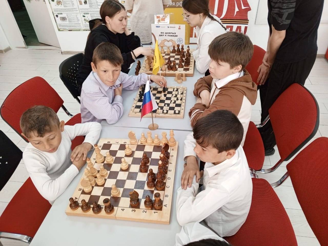 При участии Местного отделения Ставропольского регионального отделения Российского военно-исторического общества (РО РВИО СК) в Грачёвском муниципальном округе (председатель – Степаненко Н.И.) для учащихся МКОУ СОШ №5 с. Сергиевского (директор – Гоноченко О.А., член РО РВИО СК) был организован турнир по шахматам, посвящённый 80-летию Великой Победы.