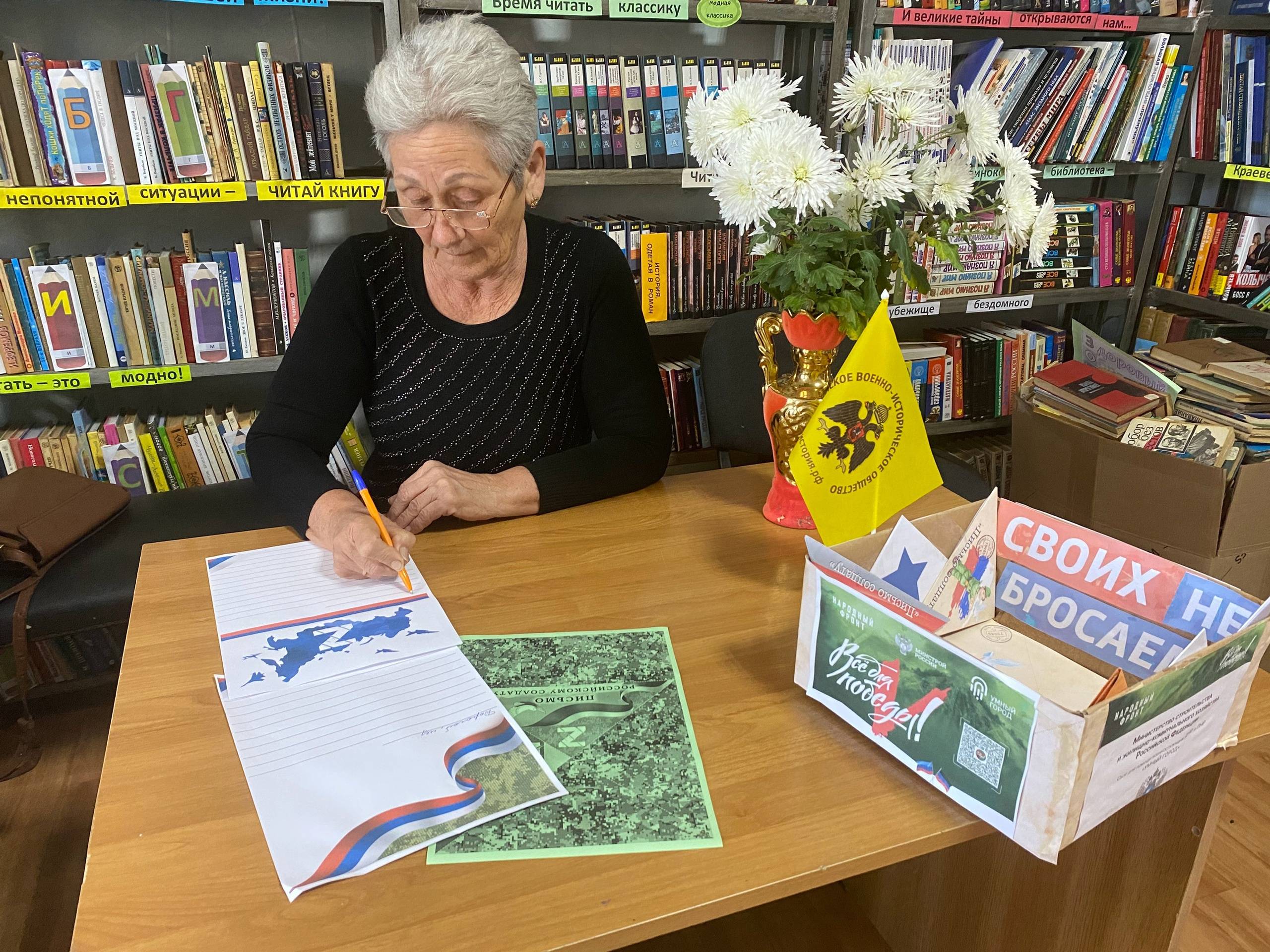 Так, в Доме культуры с. Сергиевского Грачёвского муниципального округа (директор – Петрова З.И., член РО РВИО СК) в библиотеке (библиотекарь – Жалыбина Г.М., член РО РВИО СК) и фойе было оборудовано несколько специальных зон для написания писем военным на фронт. Два месяца читатели библиотеки, неравнодушные жители села, дети из клубных формирований писали письма со словами поддержки и с пожеланиями к Новому году нашим бойцам. Все письма и подарки уже были отправлены со своими земляками в расположение их воинских частей.