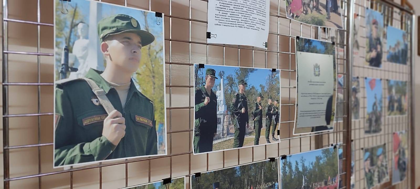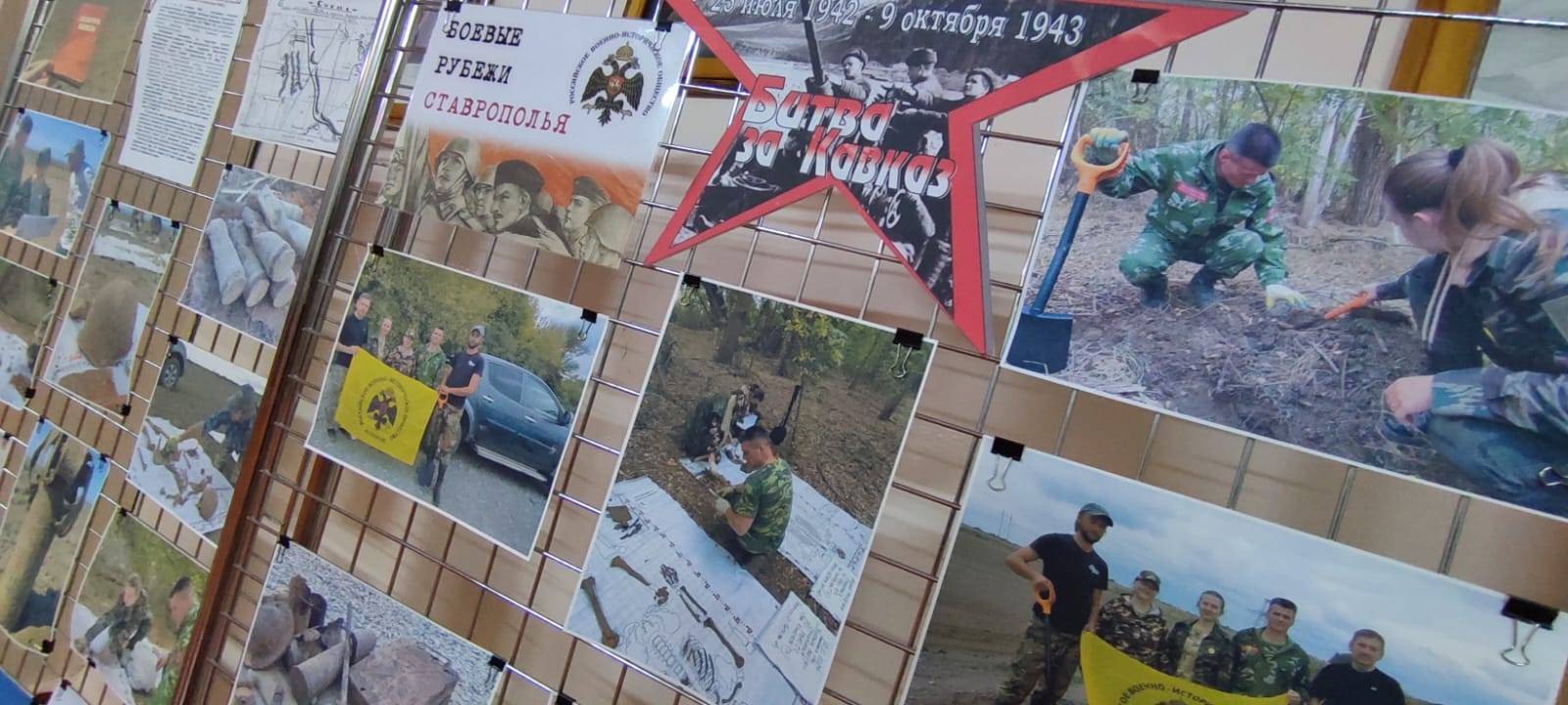 Отдельные разделы выставки знакомят посетителей с прошедшей 9 октября 2024 года в х. Дыдымкин церемонии захоронения останков 25 бойцов Красной Армии, обнаруженных в ходе экспедиций «Боевые рубежи Ставрополья – 2023». Рассказы об экспедиции и церемонии захоронения останков защитников Кавказа дополняют видеосюжеты.