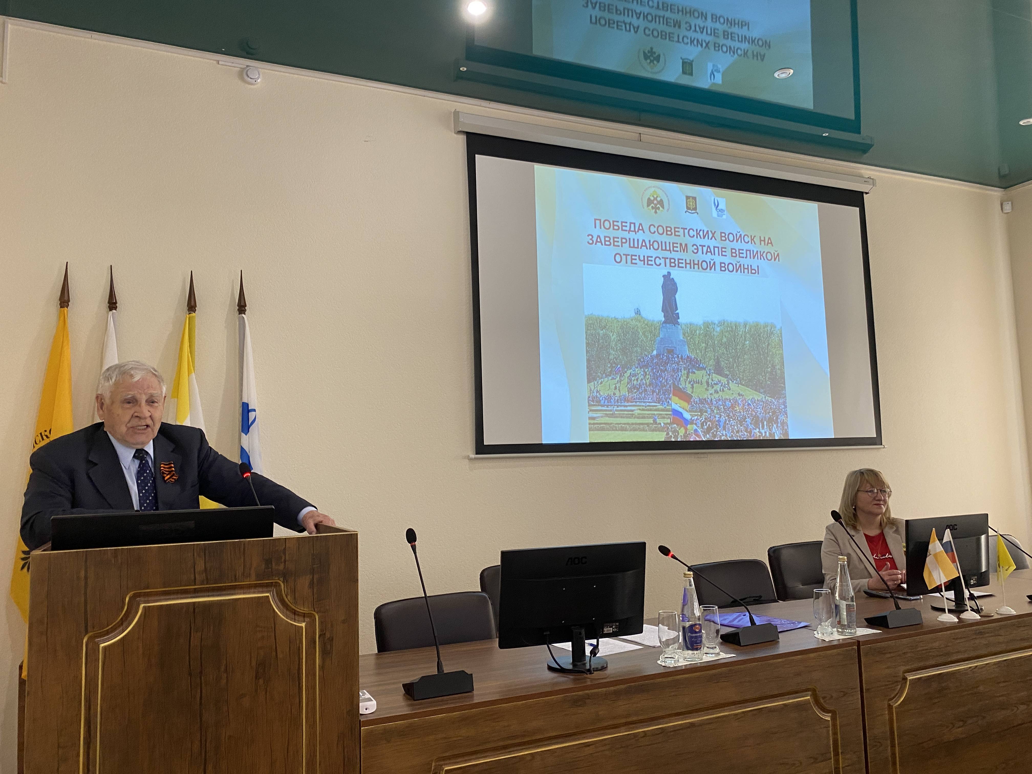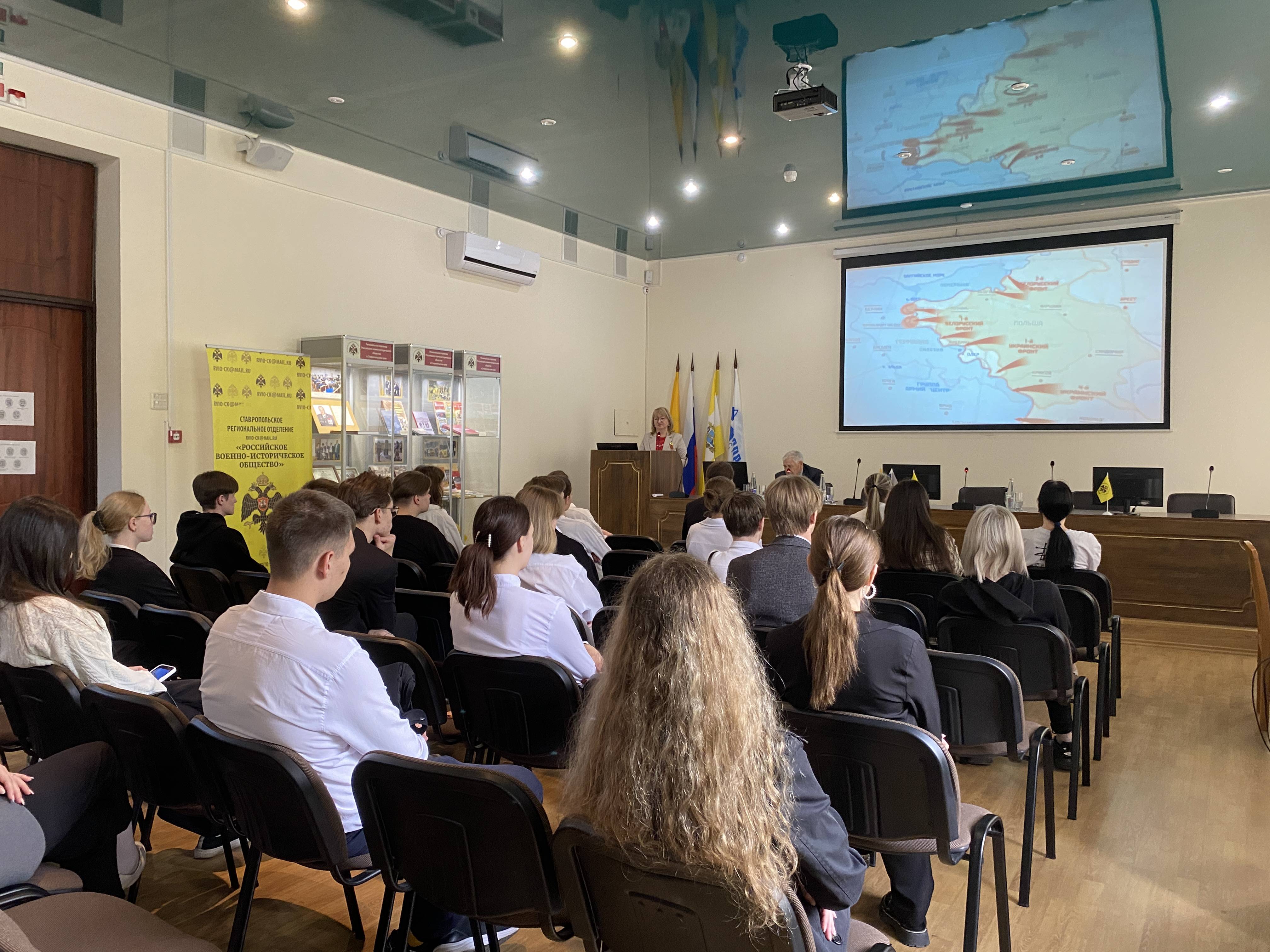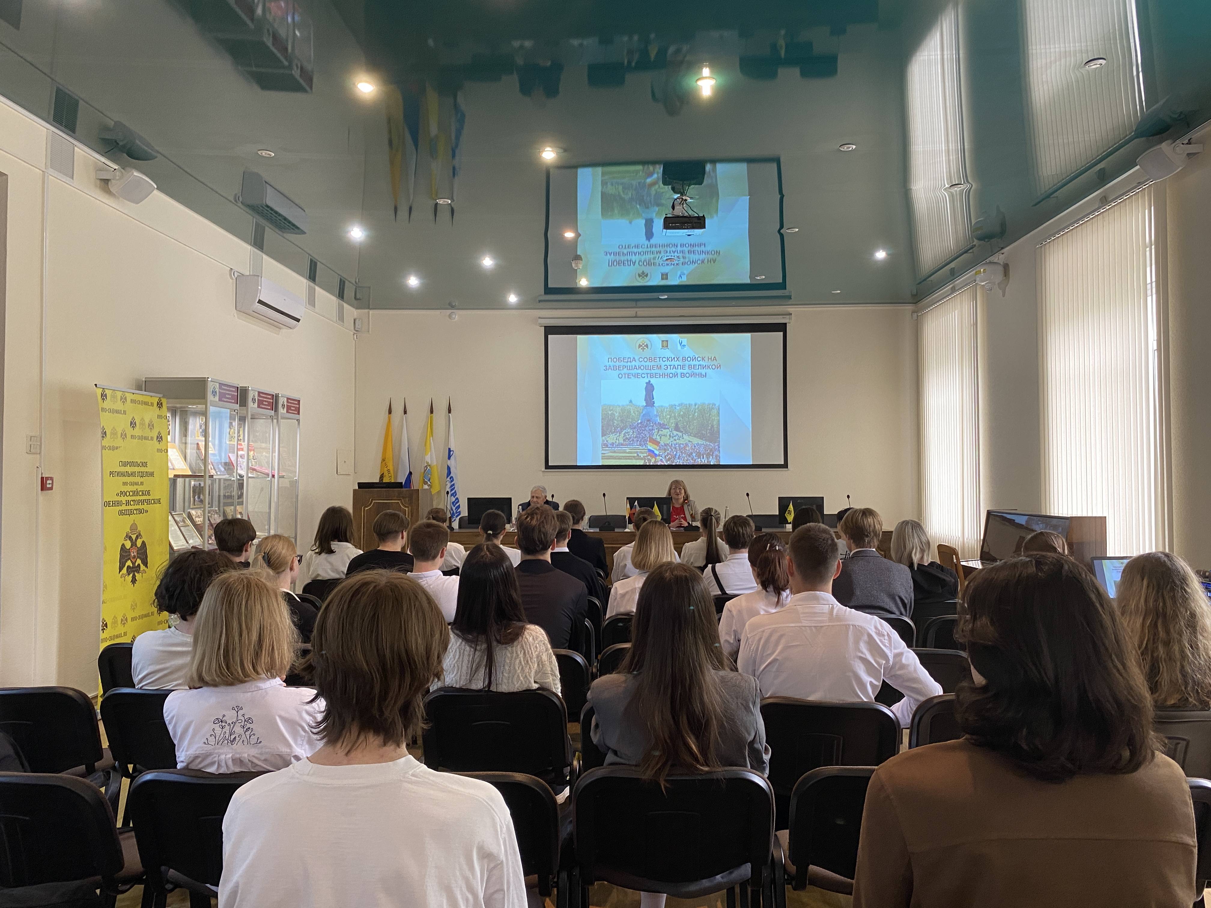 Вместе с лекторами Судавцовым Н.Д., д.и.н., Почетным профессором Северо-Кавказского федерального университета (СКФУ), главным научным сотрудником отдела военной истории и патриотической работы СГМЗ, одним из учредителей РО РВИО СК, и Стрекаловой Е.Н., к.и.н., доцентом кафедры истории России СКФУ, старшим научным сотрудником отдела военной истории и патриотической работы СГМЗ, членом РО РВИО СК, школьники обсудили значение и главные итоги Берлинской наступательной операции.