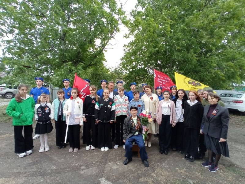 7 мая 2024 г. учащиеся МКОУ СОШ №5 с. Балахоновского Кочубеевского муниципального округа под руководством Шульгиной И.В., учителя истории, заместителя директора по УВР, члена РО РВИО СК, поздравили с предстоящим праздником 9 Мая Шкуратенко Алексея Андреевича, ветерана Великой Отечественной войны. Ребята выступили с концертной программой для ветерана, подарили ему цветы и памятные подарки. Также учащиеся школы записали видеопоздравления для военнослужащих-участников СВО, в которых в исполнении детей прозвучали трогательные стихи и песни. Дело дедов в борьбе с нацизмом продолжают внуки и правнуки.