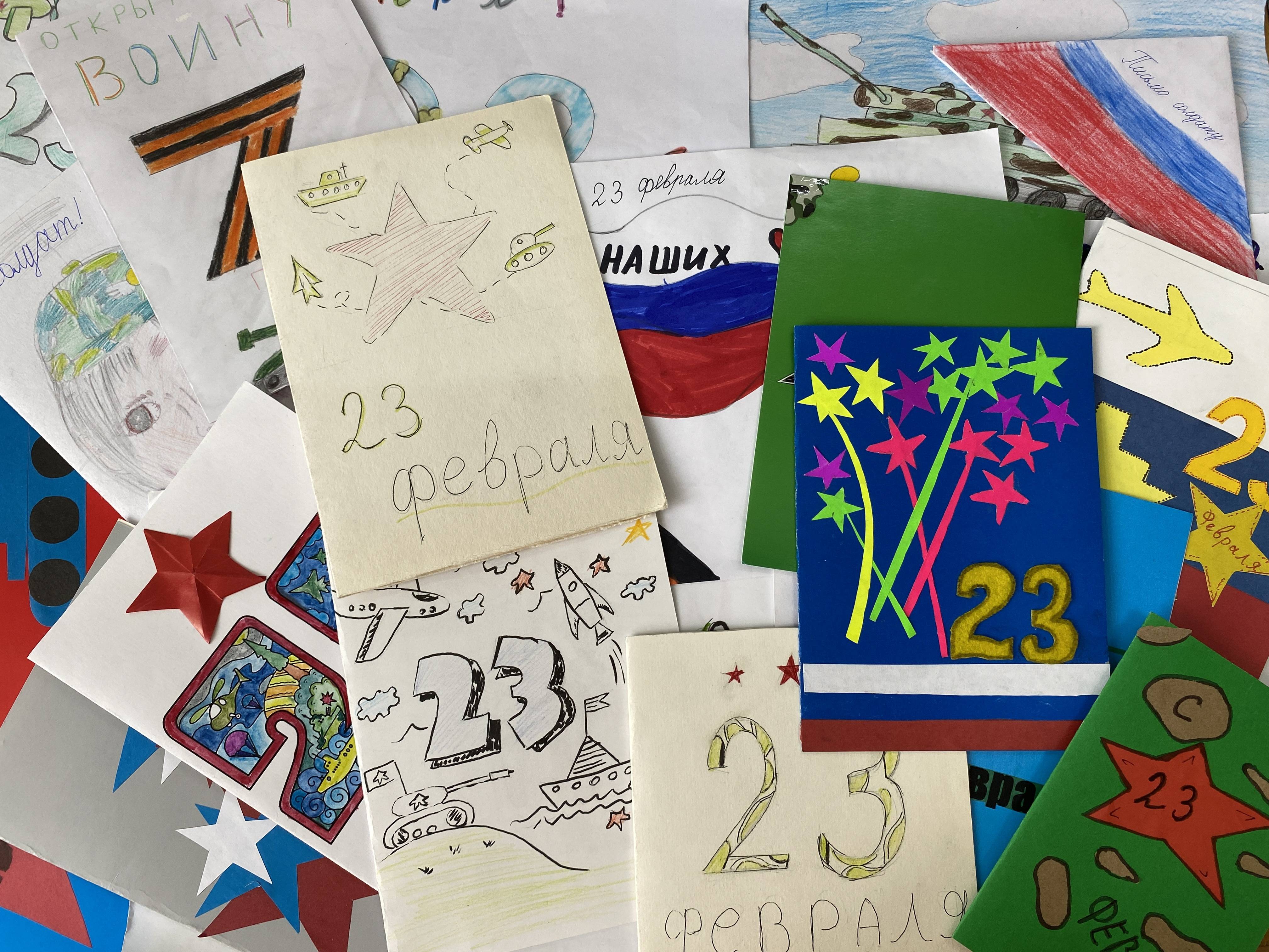 Подарки сопровождались детскими рисунками и письмами с теплыми пожеланиями к наступающему празднику, словами благодарности за защиту мира.