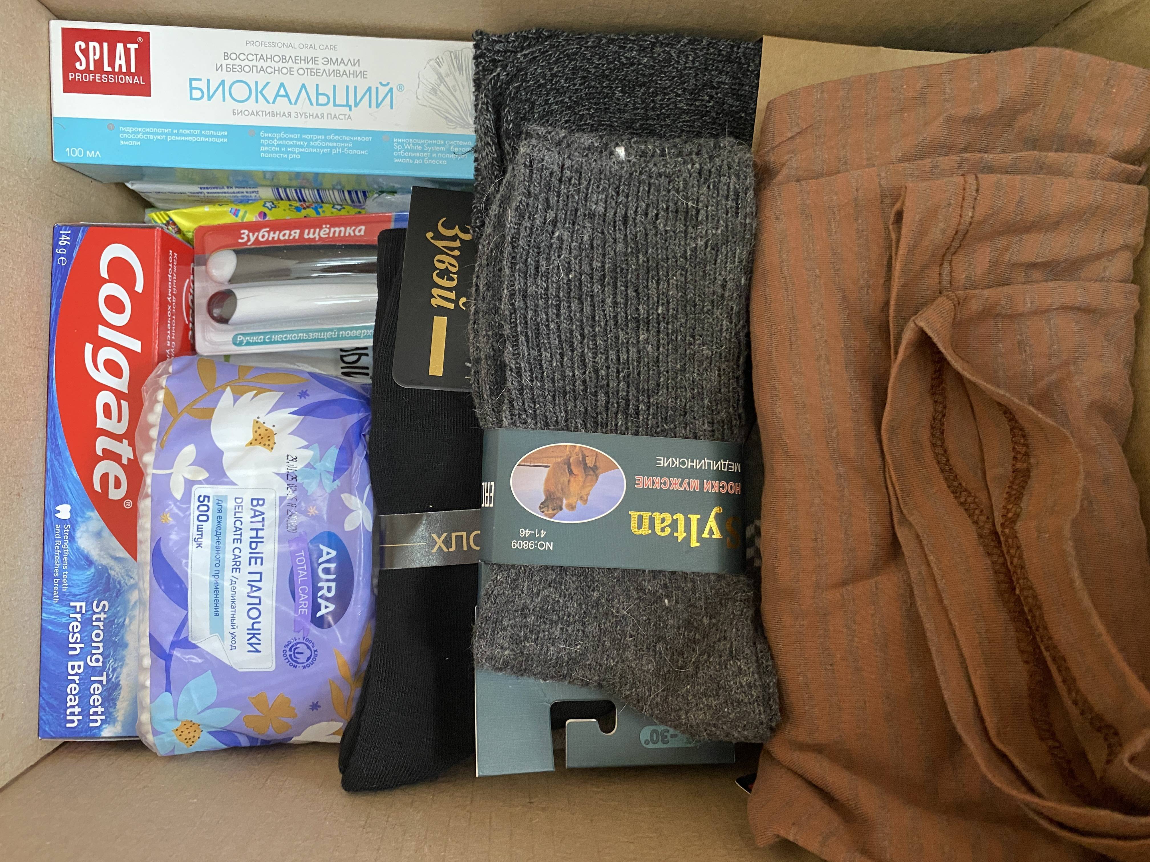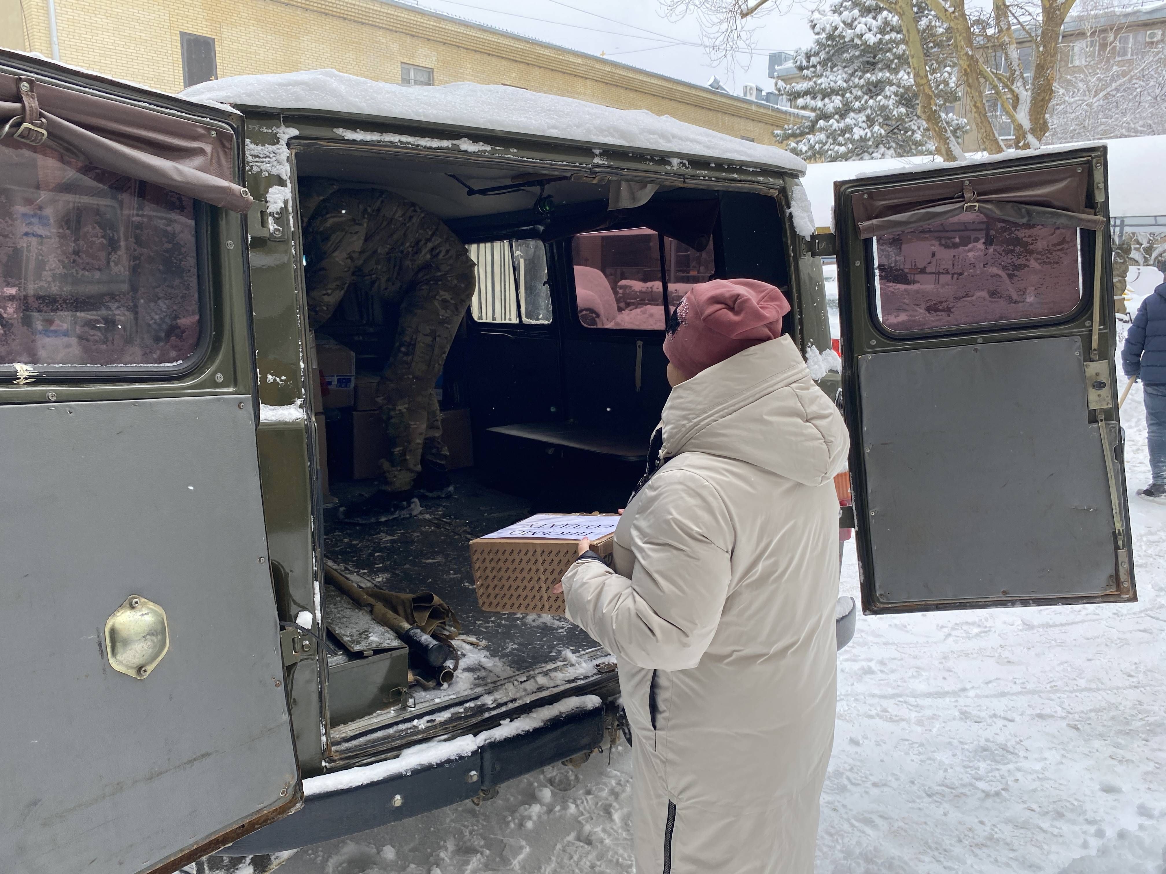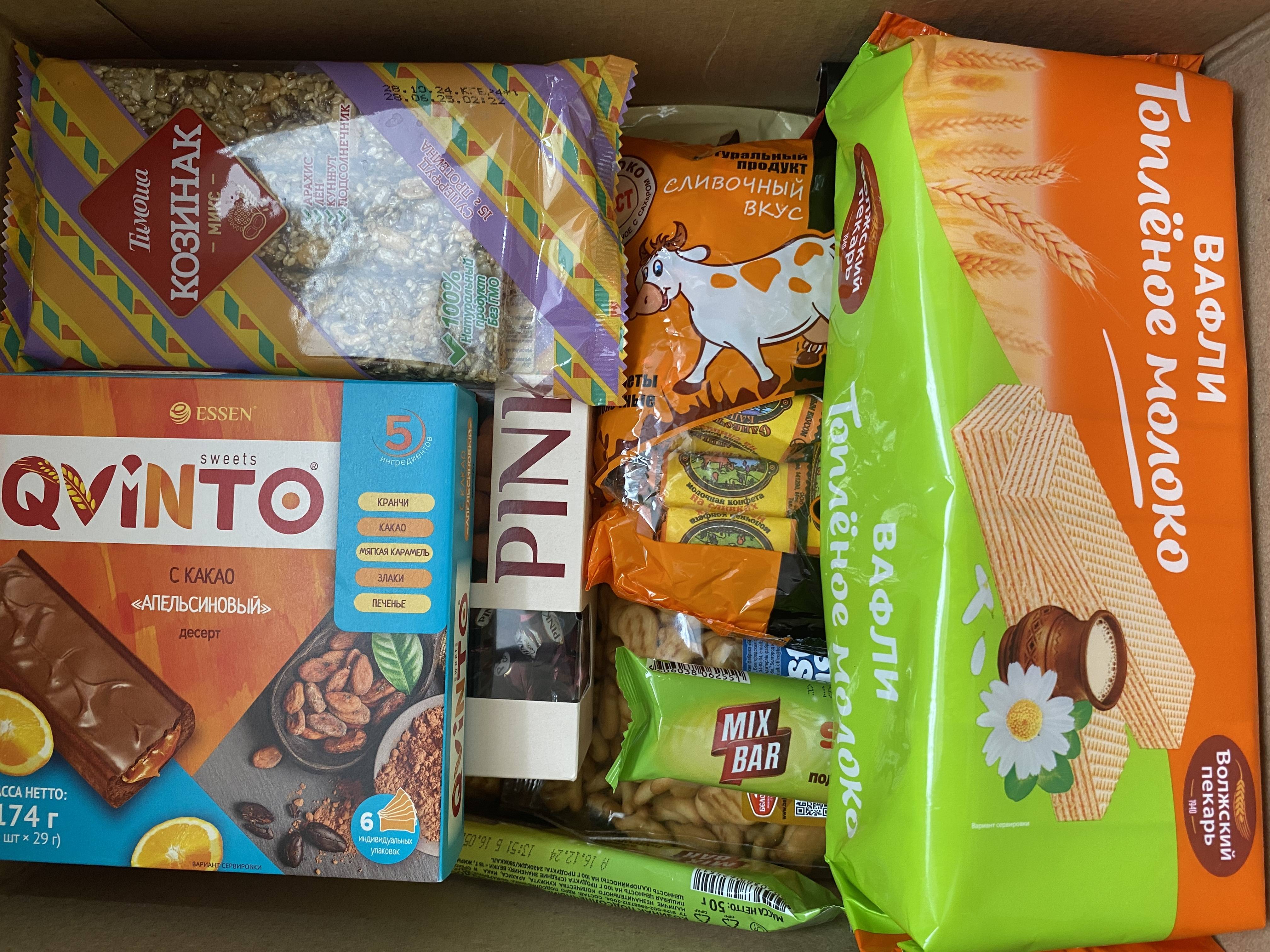 На передовую были отправлены конфеты, печенье, чай, кофе, консервы, крупы, каши и супы быстрого приготовления, носки, средства личной гигиены, окопные свечи.