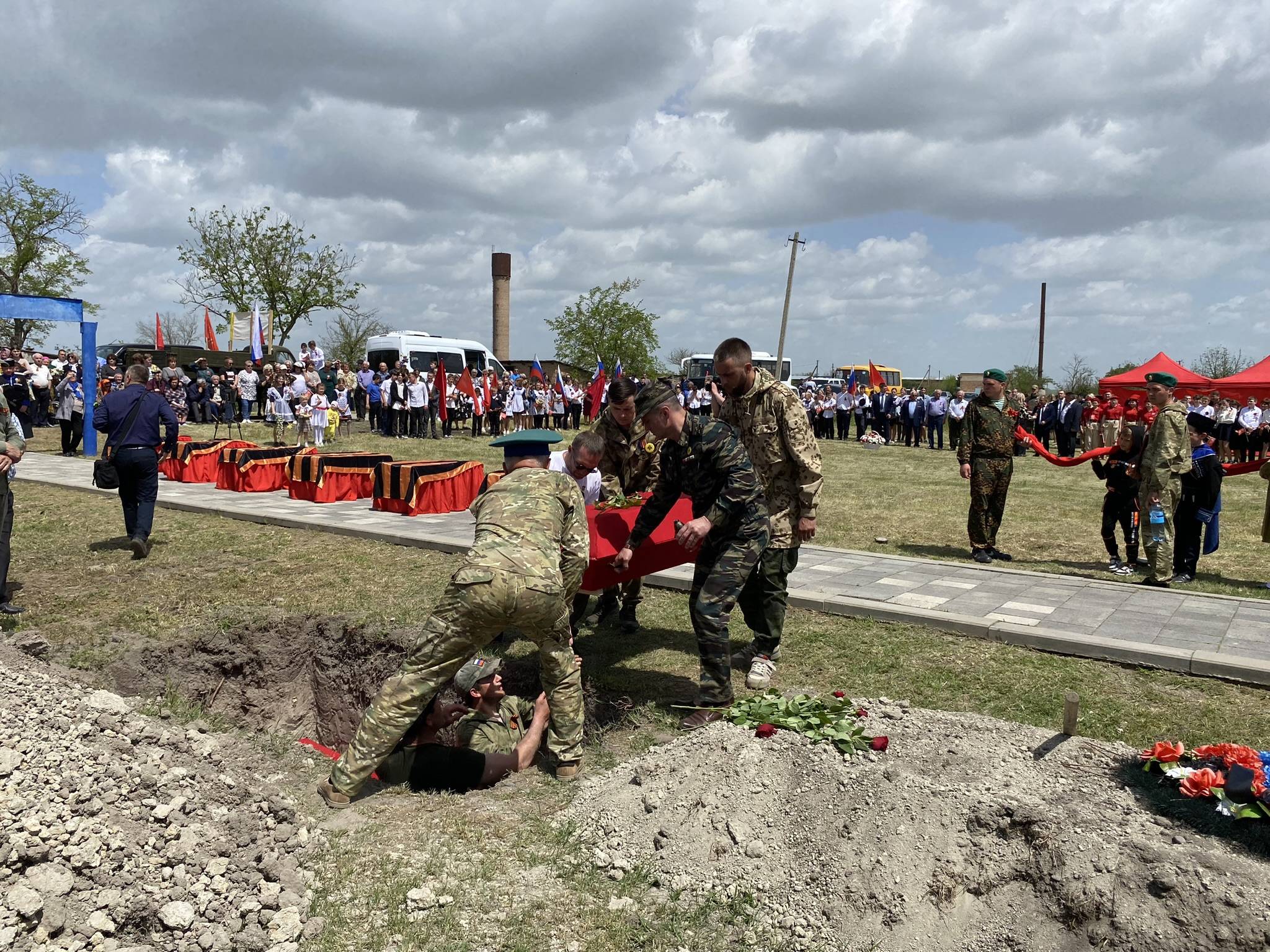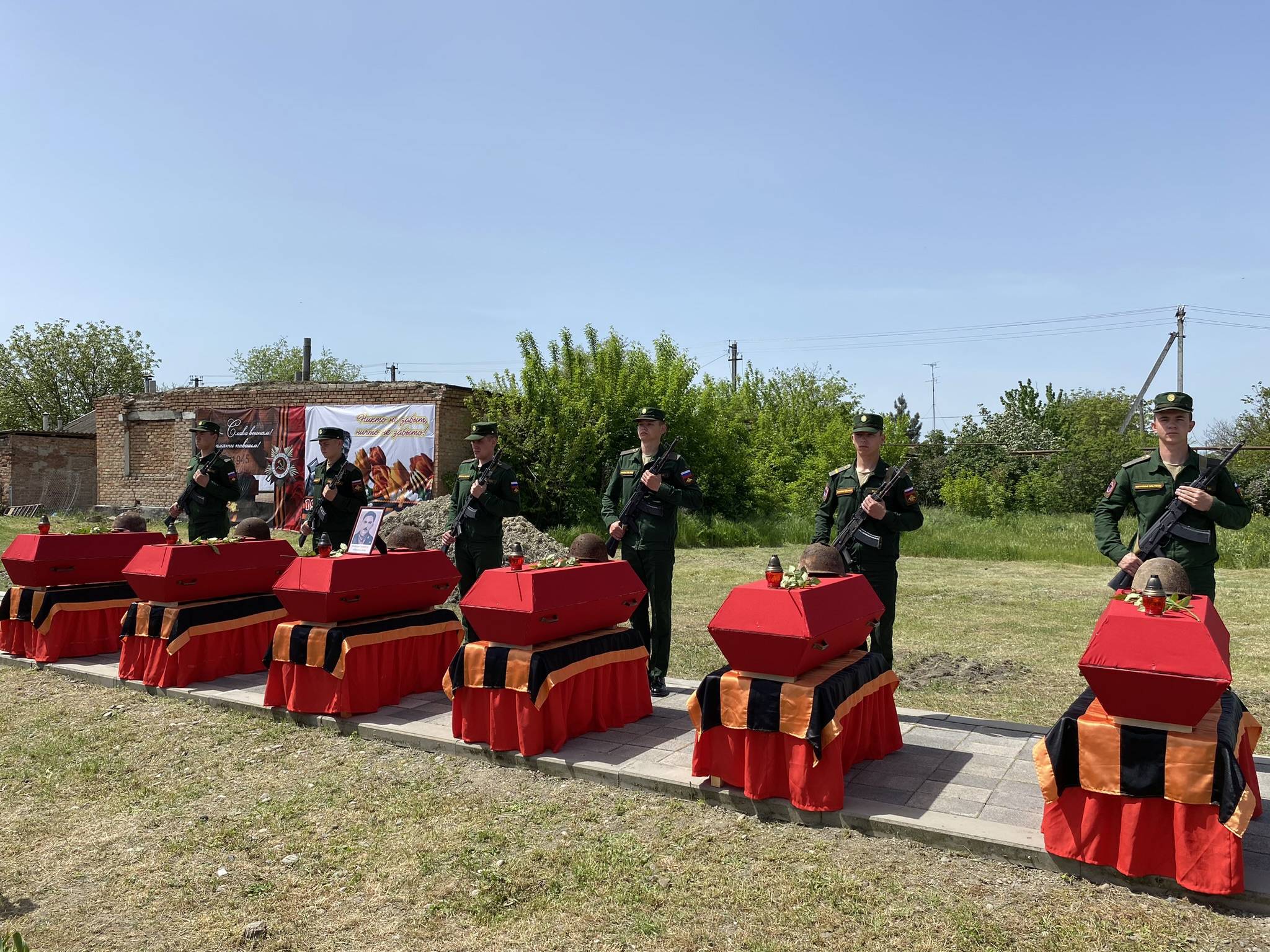 Останки шестерых красноармейцев похоронили со всеми воинскими почестями в братской могиле, состоялась панихида, присутствующие почтили память защитников Отечества минутой молчания.