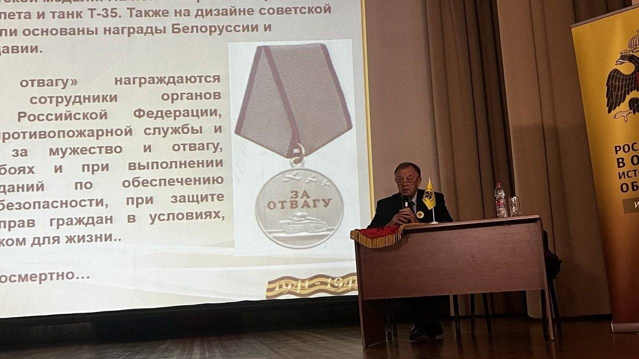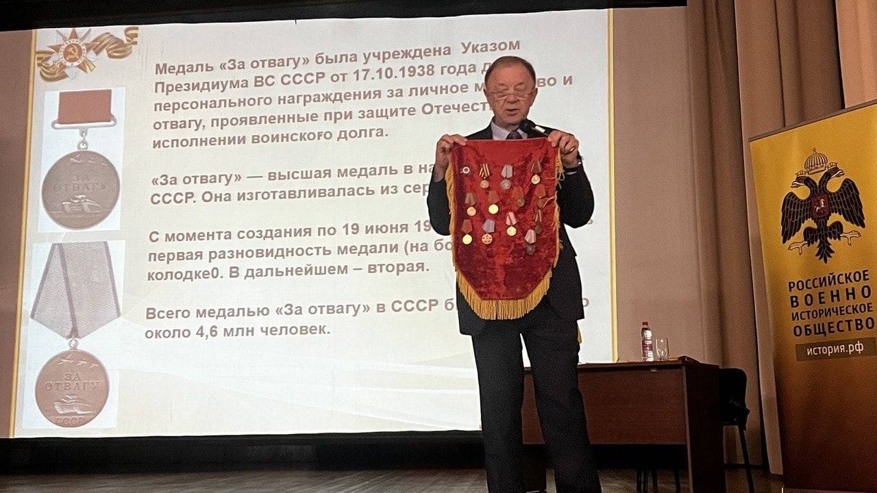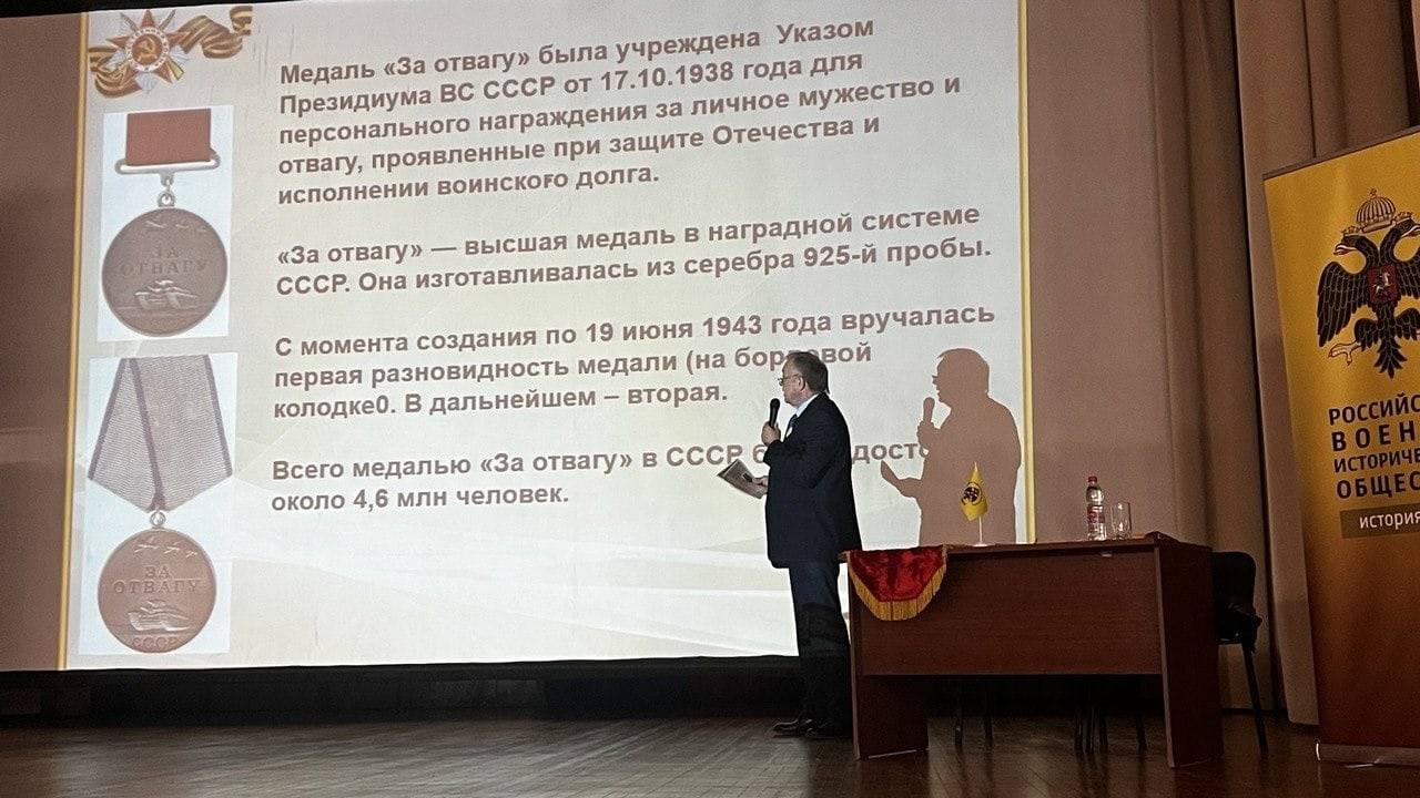 Щендригин Н.И. рассказал школьникам об учреждении награды, уроженцах поселка, удостоенных медали «За Отвагу», их подвигах. На мероприятии присутствовал кавалер медали Н.В. Стрелков. Председатель Местного отделения рассказал о планомерной работе, проводимой РО РВИО СК, по сохранению исторической памяти о Героях Отечества и ее увековечивании в мемориальной деятельности, в том числе в рамках проекта «Улица Героя», реализуемого в Изобильненском городском округе в 2022 году.