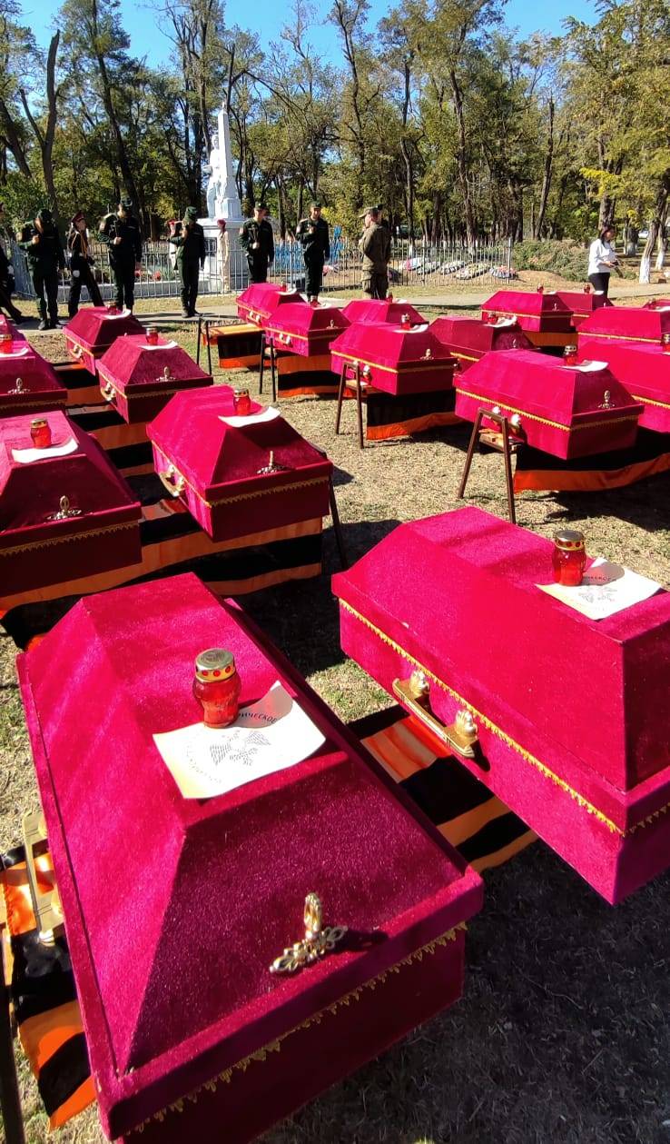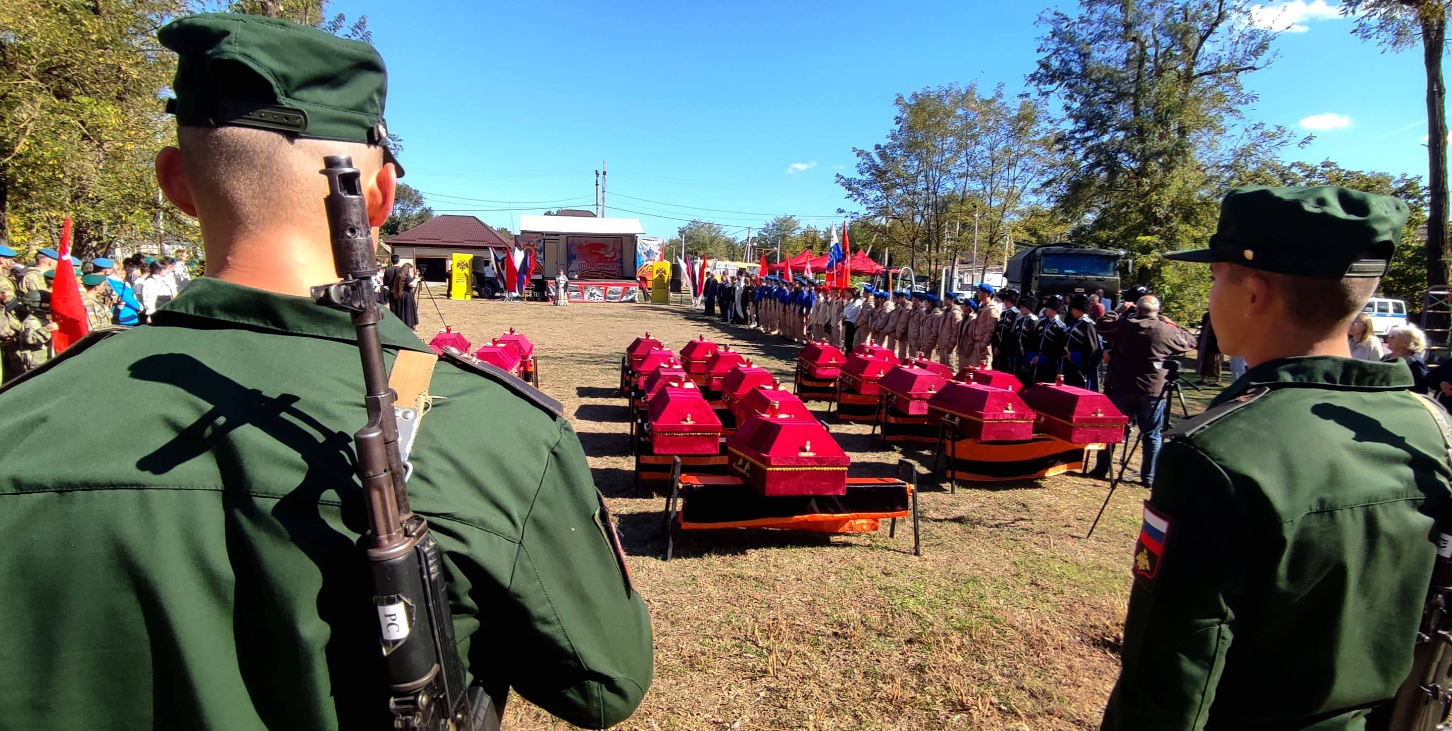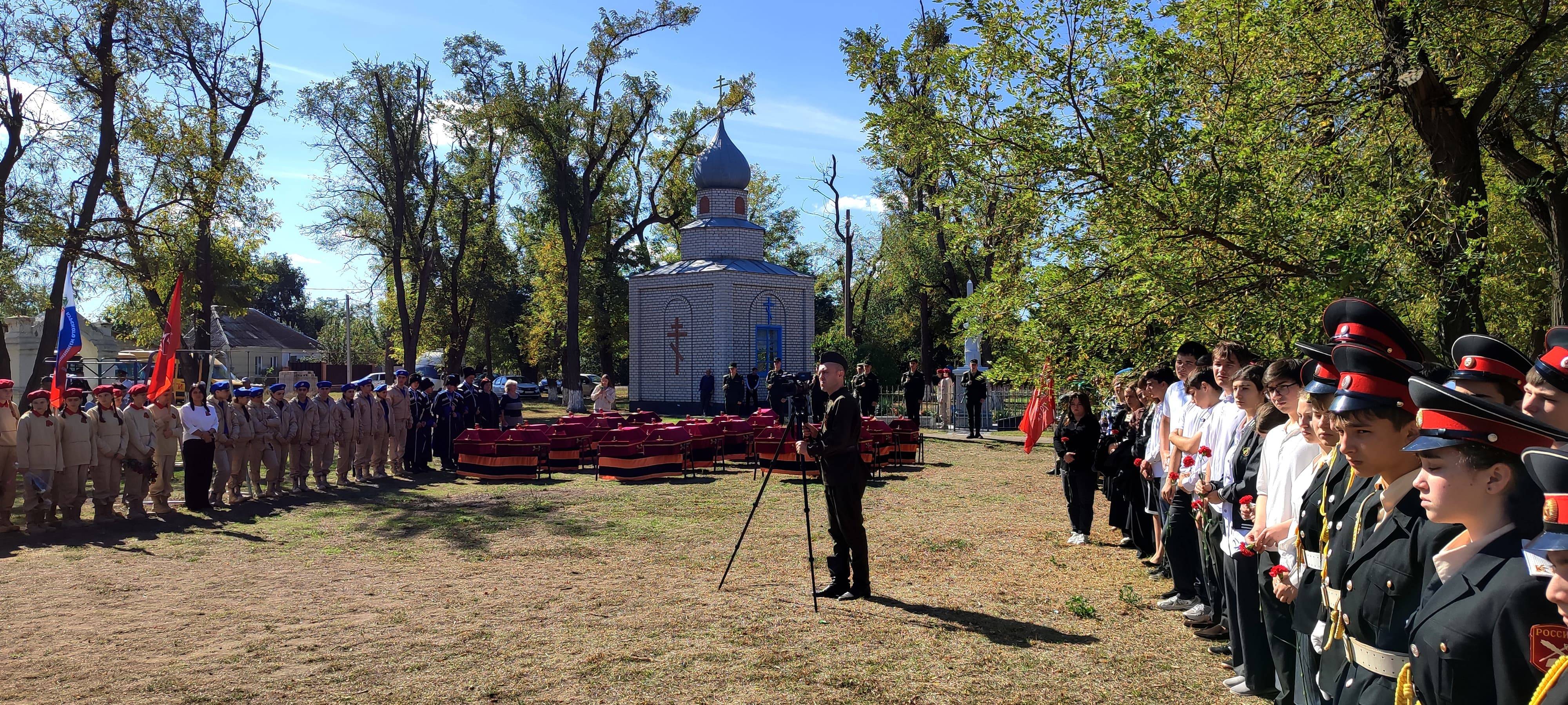 В рамках церемонии захоронения прошло показательное выступление патриотического клуба «Патриот» из г. Георгиевска, была отслужена панихида, прогремели залпы воинского салюта, состоялось возложение цветов к братской могиле.