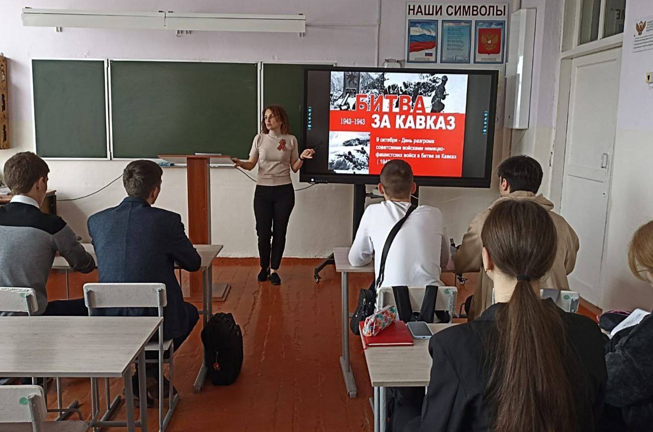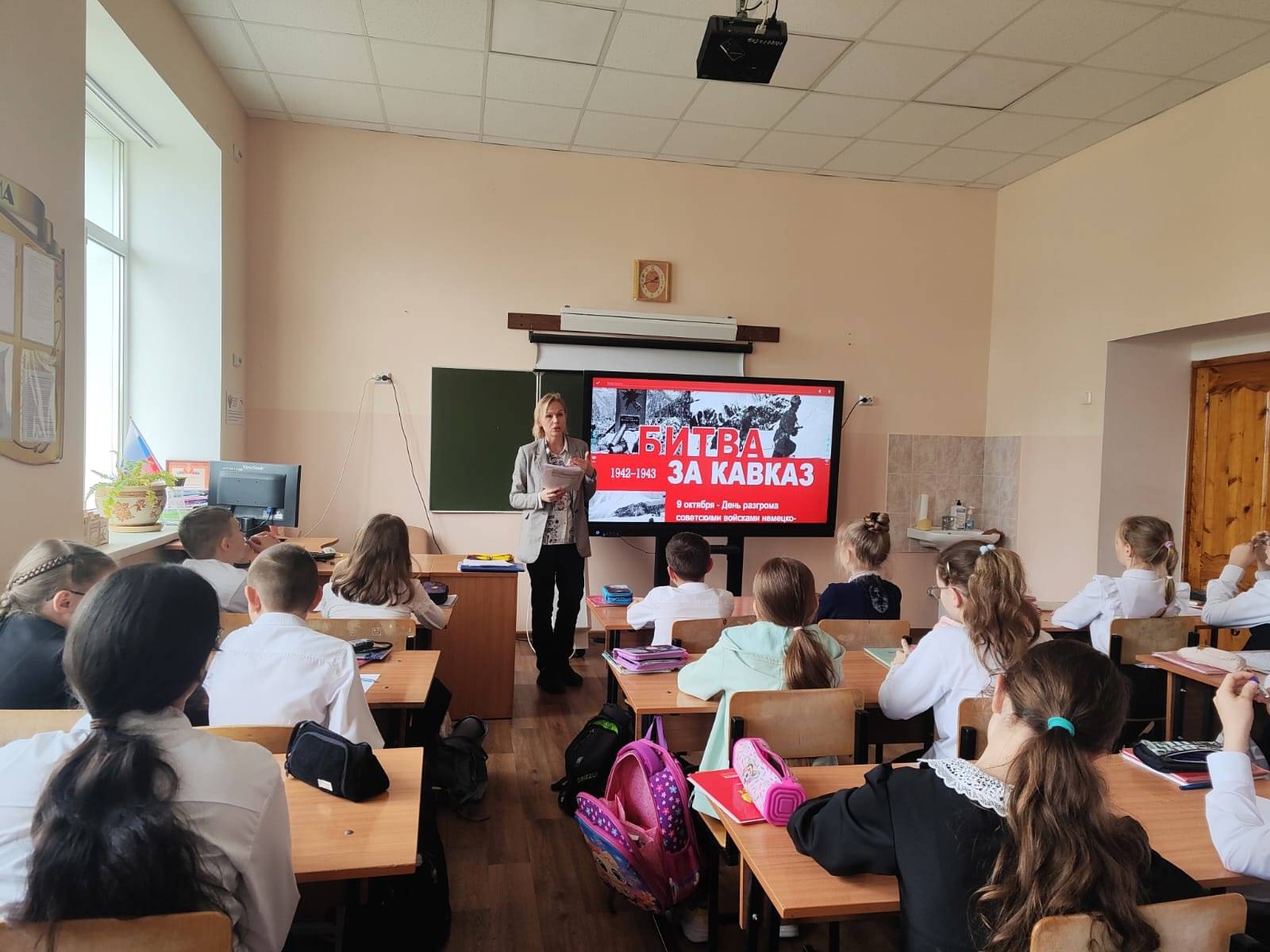 С 10 по 16 апреля 2025 г. в школах Георгиевского муниципального округа прошла серия просветительских уроков, посвящённых 80-летию Победы в Великой Отечественной войне. Основной темой занятий стала «Битва за Кавказ» – одно из ключевых сражений, продемонстрировавшее мужество и стойкость советского народа.