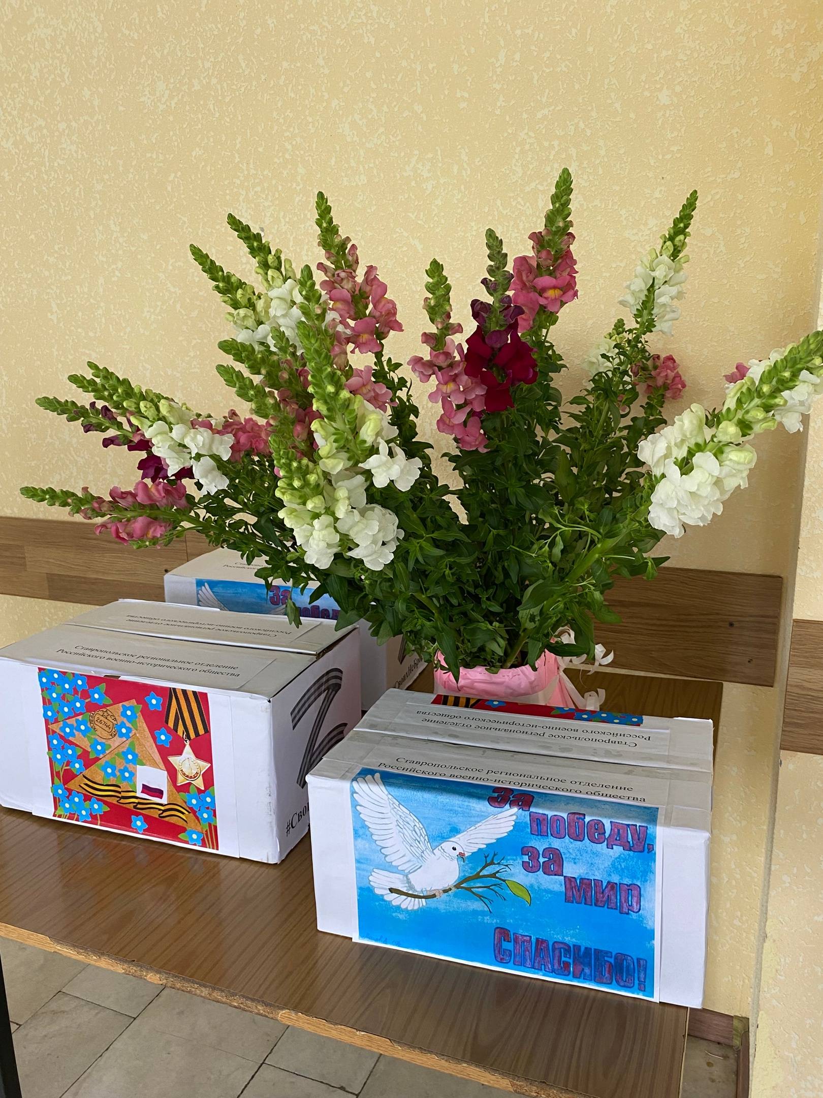 Каменева Г.Н., к.и.н., зав. отделом военной истории и патриотической работы Ставропольского государственного музея-заповедника, исполнительный директор РО РВИО СК, передала персоналу госпиталя посылки с письмами от детей и студентов, собранными в рамках акции РО РВИО СК «Письмо солдату», цветы и сладкие подарки для солдат и медиков. Активное участие в акции «Письмо солдату» приняли учащиеся МБОУ СОШ №7 г. Ставрополя. От лица администрации школы выступила Е.Н. Тюрина. Еще одну посылку с письмами передали студенты СГПИ.