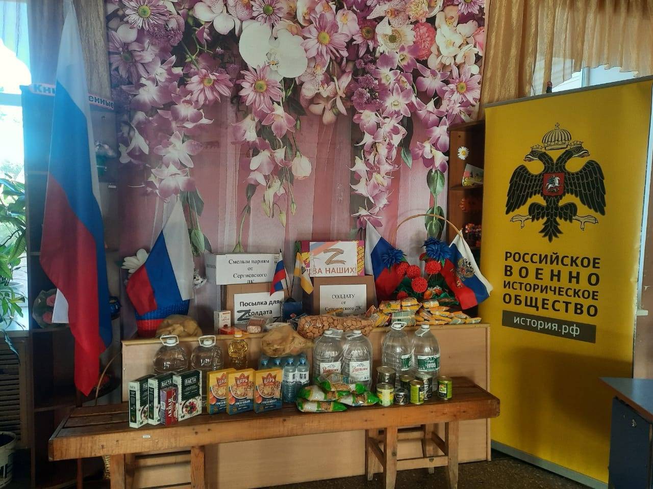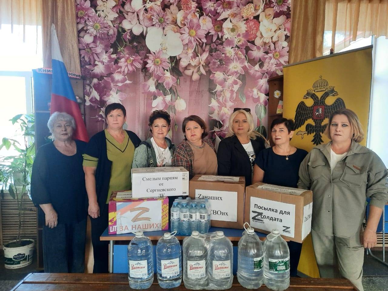 Члены Местного отделения РО РВИО СК в Грачёвском муниципальном округе (председатель – Степаненко Н.И.) вместе с сотрудниками Сергиевского сельского Дома культуры (директор – Петрова З.И., член РО РВИО СК) провели акцию в поддержку участников СВО «Доброта вокруг нас». Совместными усилиями для бойцов были собраны продукты питания (крупы, макароны, лапша, супы и каши быстрого приготовления, сладости (печенье, вафли, сухари), консервы (мясные и овощные), растительное масло) и питьевая вода.