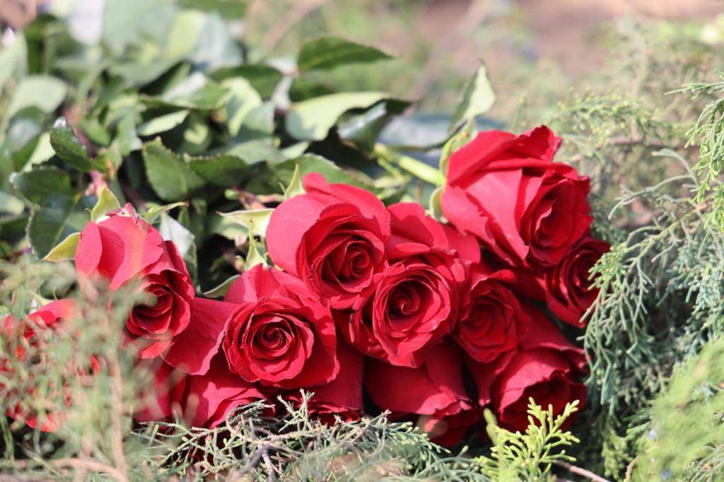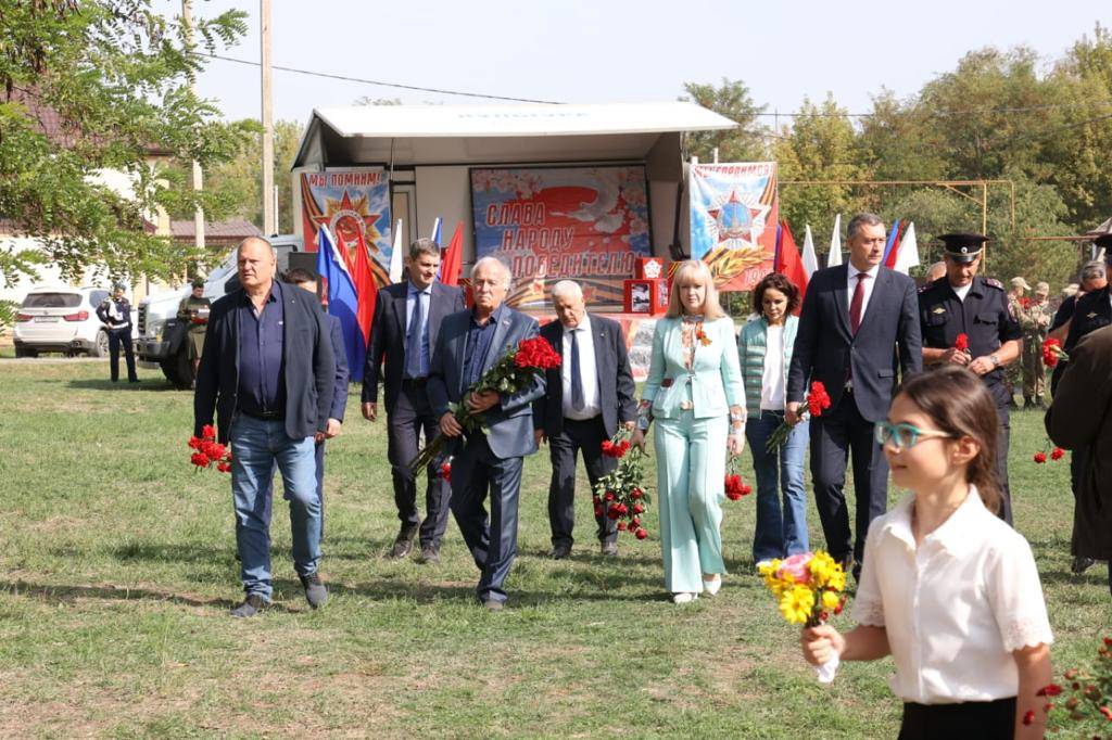 В знак благодарности воинам, сражавшимся с фашистскими захватчиками, к братской могиле были возложены венки и цветы.