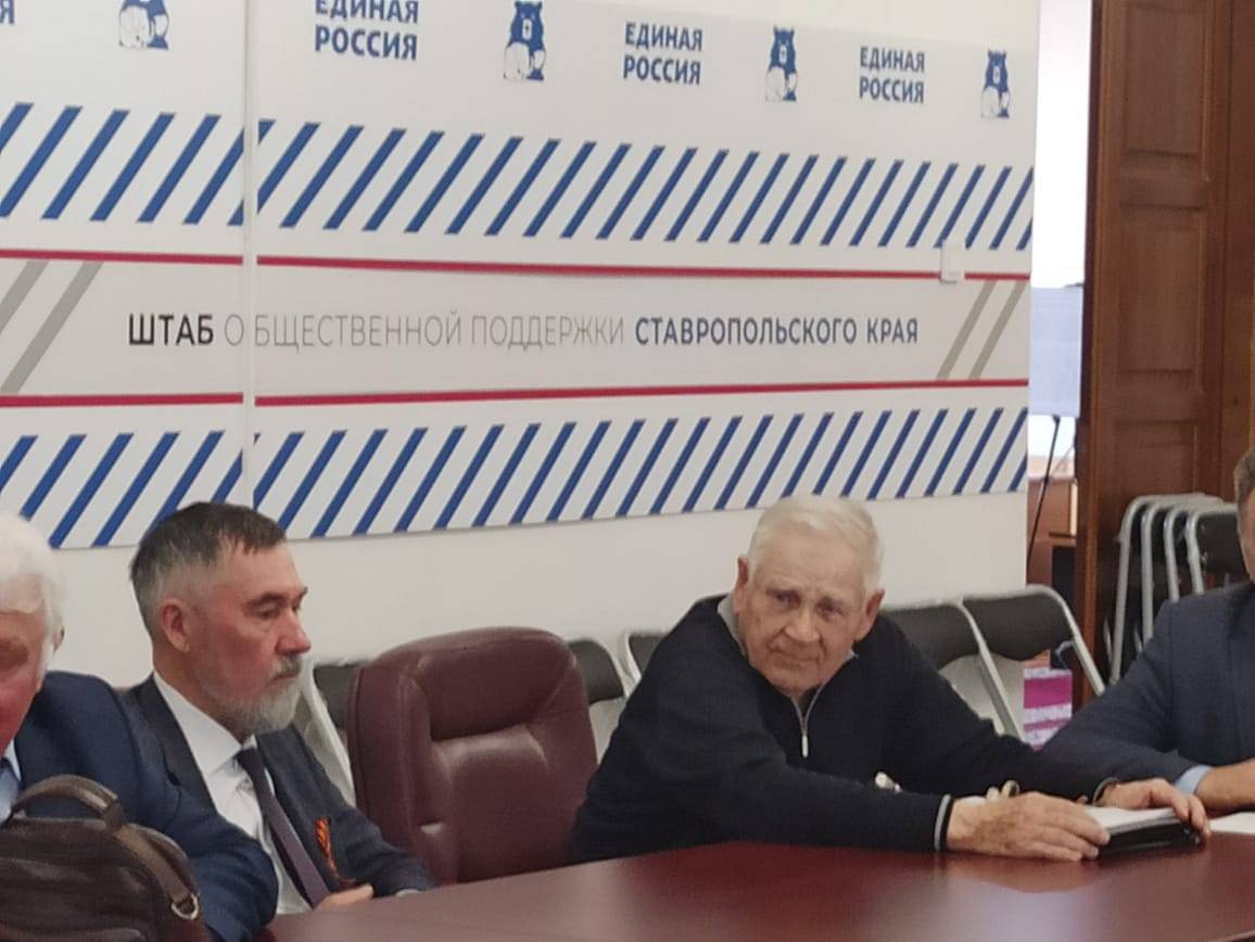 Заседание прошло в Штабе общественной поддержки Ставропольского края. В мероприятии также приняли участие члены РО РВИО СК: Гришко Ю.А., председатель регионального отделения ДОСААФ России Ставропольского края, член Общественной палаты РФ, ветеран боевых действий, гвардии полковник, кавалер двух орденов Мужества; Охонько Н.А., директор Ставропольского государственного музея-заповедника (СГМЗ); Судавцов Н.Д., д.и.н., Почетный профессор Северо-Кавказского федерального университета (СКФУ), главный научный сотрудник отдела военной истории и патриотической работы СГМЗ; Каменева Г.Н., к.и.н., зав. отделом военной истории и патриотической работы СГМЗ; Карташев А.В., д.и.н., доцент, начальник Центра изучения медицины и общественного здоровья Ставропольского государственного медицинского университета; Борисенко Н.И., председатель Ставропольского краевого отделения ВООВ «Боевое братство»; Москаленко В.В., председатель Совета ветеранов Ставропольского авиаучилища.