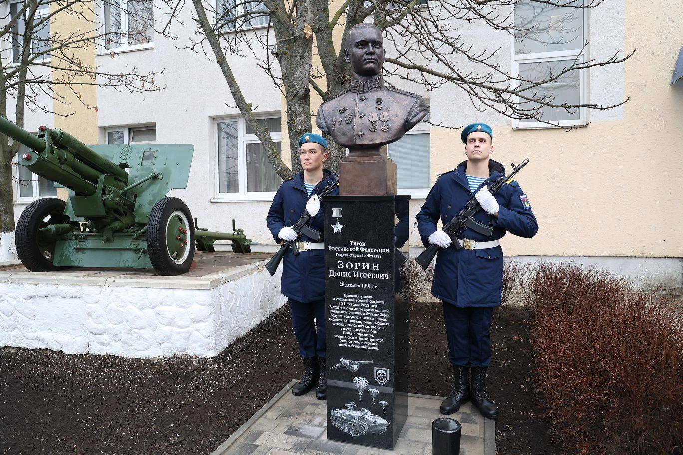 Бюст Героя России был установлен на территории 247-го гвардейского десантно-штурмового Кавказского ордена Кутузова полка, где проходил службу Денис Зорин. В торжественном митинге, посвящённом открытию монумента, принял участие председатель Ставропольского регионального отделения Российского военно-исторического общества (РО РВИО СК) Шевелёв С.А., депутат Думы Ставропольского края, кавалер трёх орденов Мужества, полковник, Почётный гражданин Ставропольского края. Также на мероприятии присутствовал Гришко Ю.А., член Общественной палаты РФ, ветеран боевых действий, гвардии полковник, кавалер двух орденов Мужества, член РО РВИО СК.