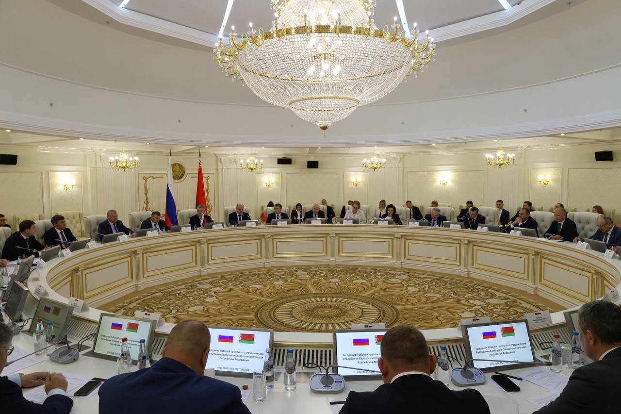 Далее состоялось заседание рабочей группы по сотрудничеству Ставропольского края и Республики Беларусь. С приветственным словом к участникам обратились Министр промышленности Республики Беларусь – А.Н. Рогожник и Губернатор Ставрополья – В.В. Владимиров. В ходе встречи прозвучало, что Беларусь нацелена на более интенсивное развитие сотрудничества со Ставропольским краем.