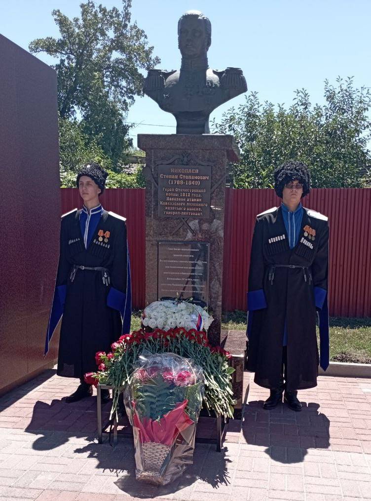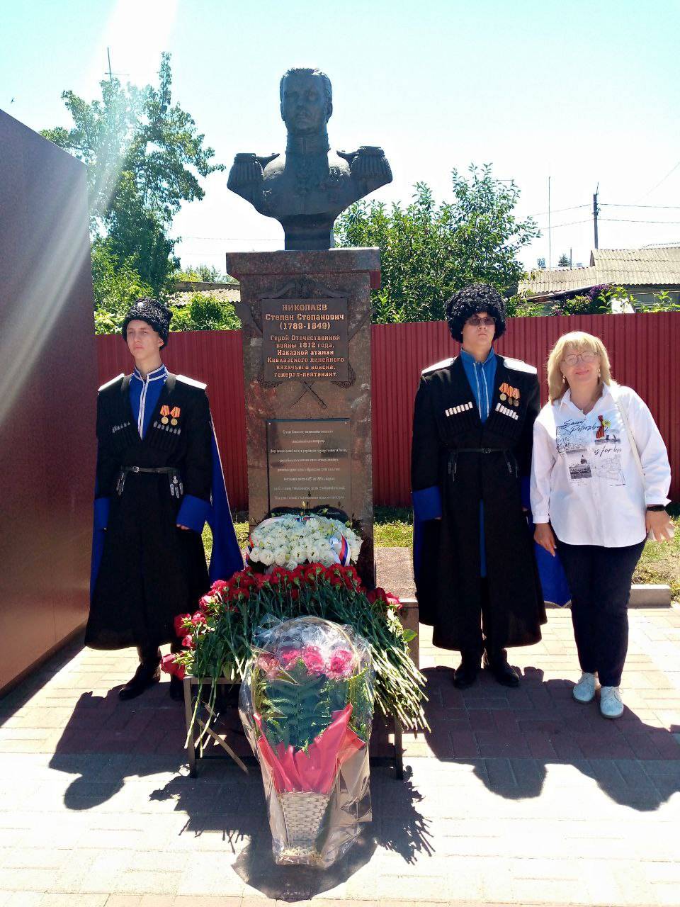 13 июля 2024 года Стрекалова Е.Н., к.и.н., доцент кафедры истории России Северо-Кавказского федерального университета, старший научный сотрудник отдела военной истории и патриотической работы Ставропольского государственного музея-заповедника, представитель Регионального отделения Российского военно-исторического общества в Ставропольском крае (РО РВИО СК), приняла участие в торжественной церемонии открытия бюста генерал-лейтенанту, участнику Наполеоновских войн и Кавказской войны, наказному атаману Кавказского линейного казачьего войска С.С. Николаеву в г. Михайловске.