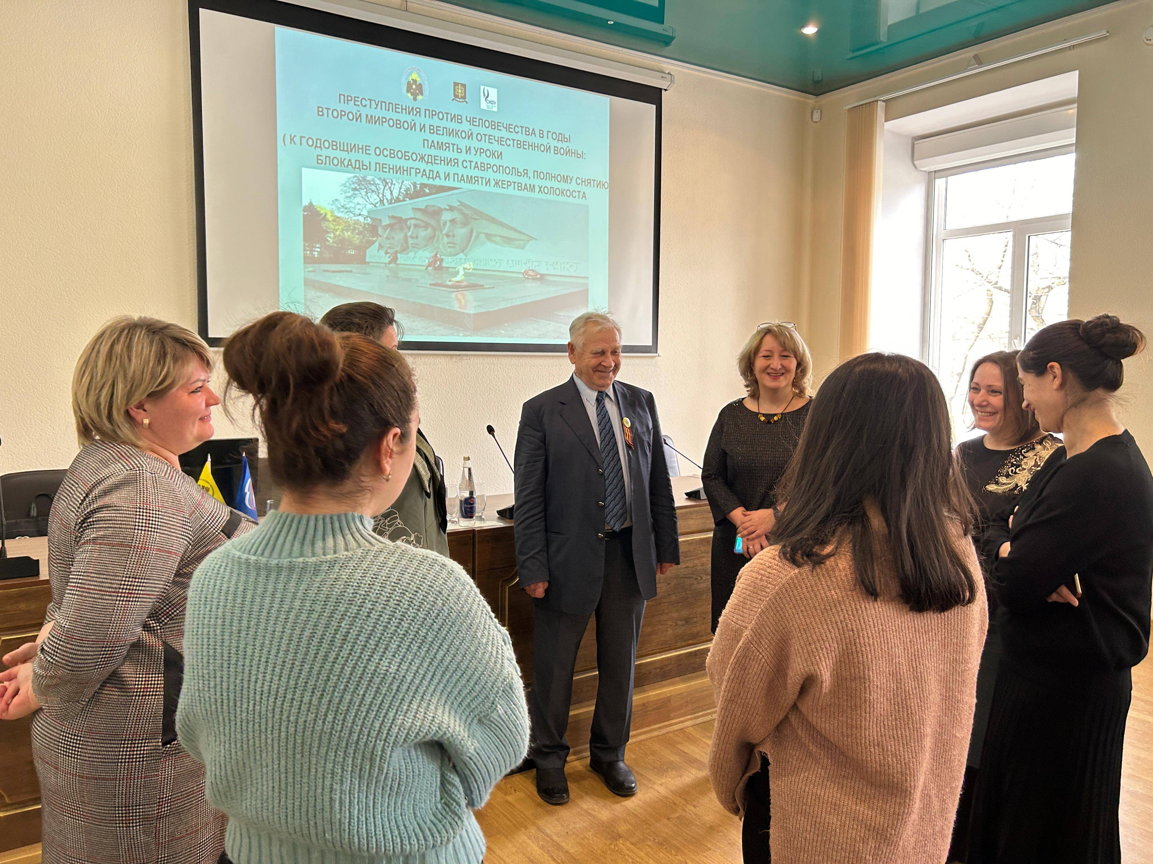 Отдельная страница мероприятия была посвящена 80-летию полного снятия блокады г. Ленинграда. Профессор Н.Д. Судавцов в своём рассказе уделил особое внимание жизни мирных жителей в условиях блокады. Являясь свидетелем событий Великой Отечественной войны, он поделился своими воспоминаниями о ленинградских детях, которые были эвакуированы на Ставрополье.
