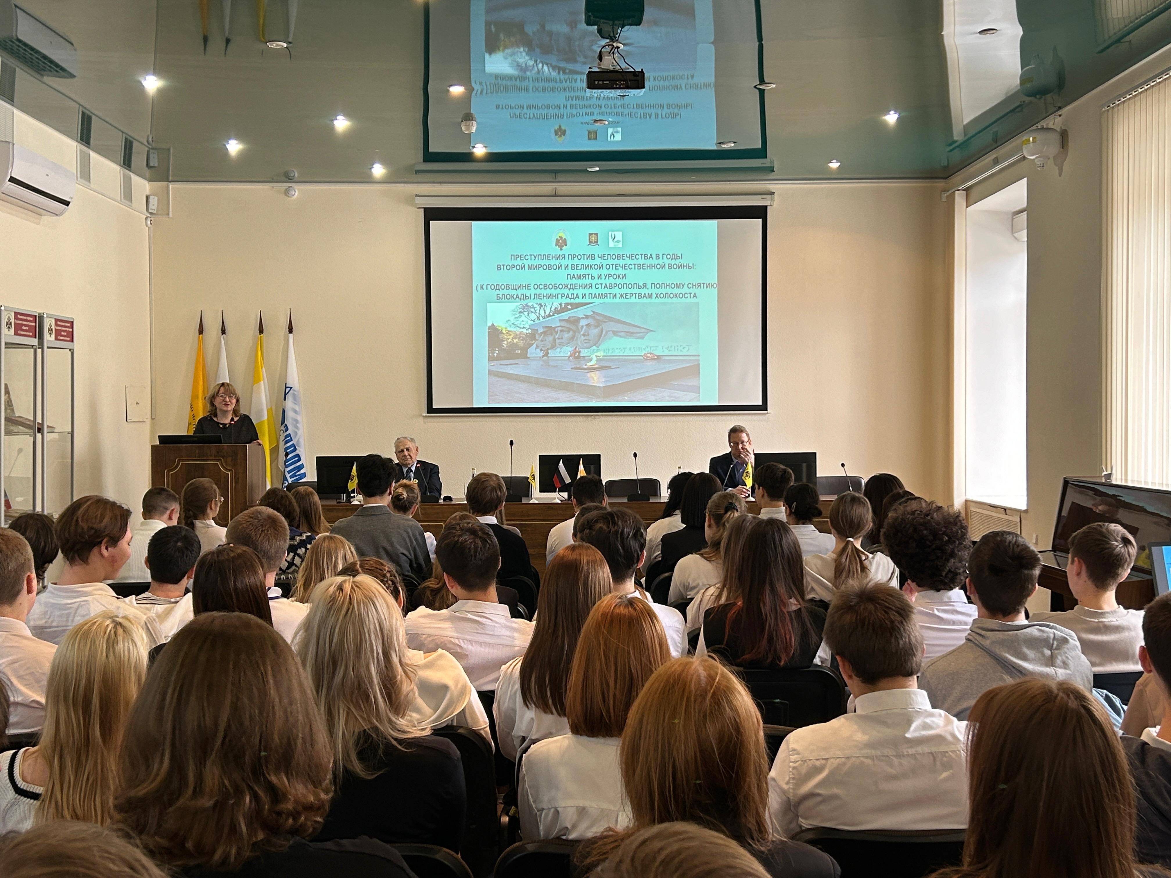 31 января 2024 г. в конференц-зале Регионального отделения Российского военно-исторического общества в Ставропольском крае (РО РВИО СК) состоялось заседание форум-площадки военно-исторических коммуникаций «Региональная военная история» в формате круглого стола на тему: «Преступления против человечества в годы Второй мировой войны: память и уроки». Мероприятие приурочено к 81-й годовщине освобождения Ставрополья от немецко-фашистской оккупации, 80-летию снятия блокады Ленинграда и Дню памяти жертв Холокоста.