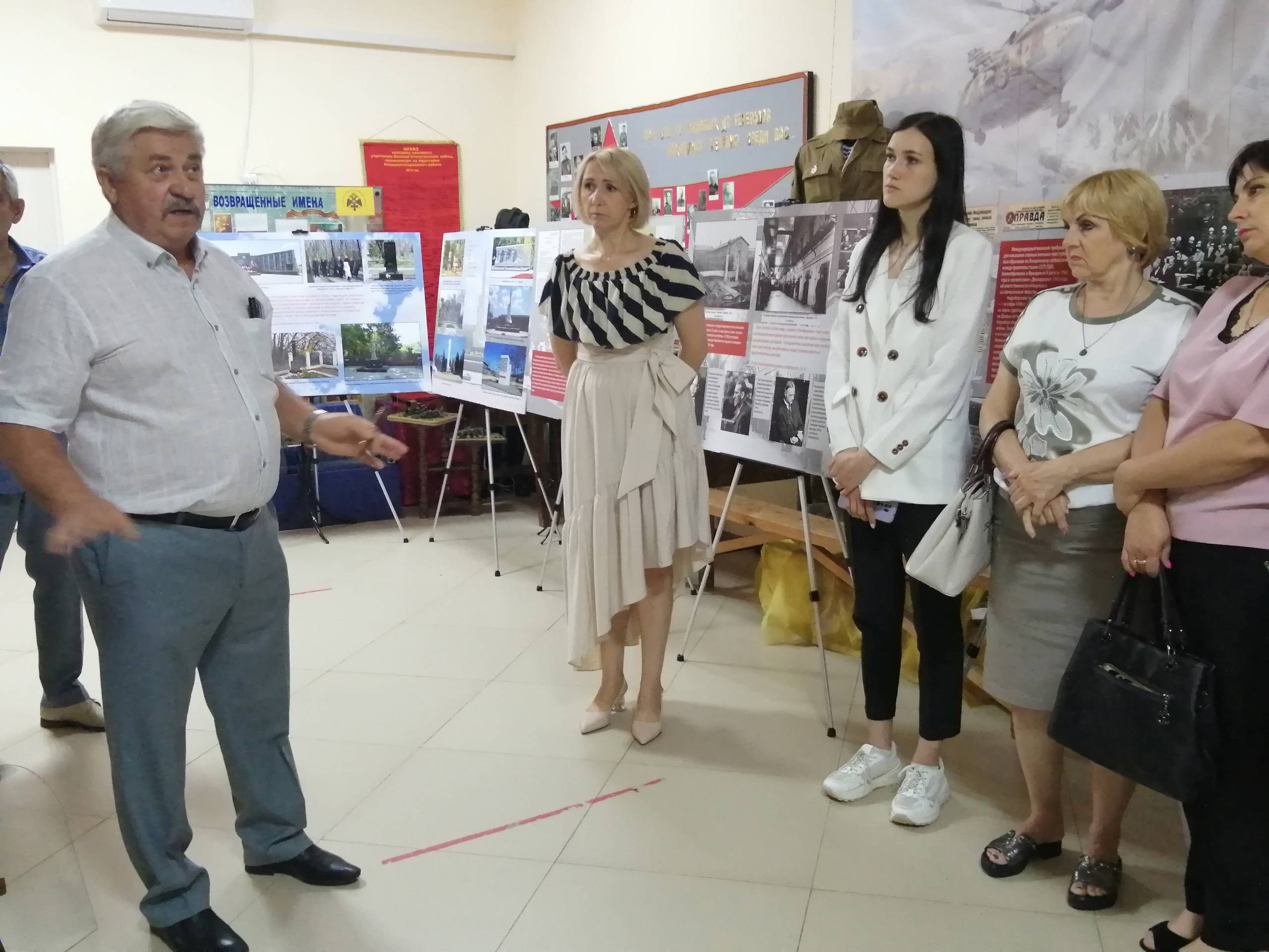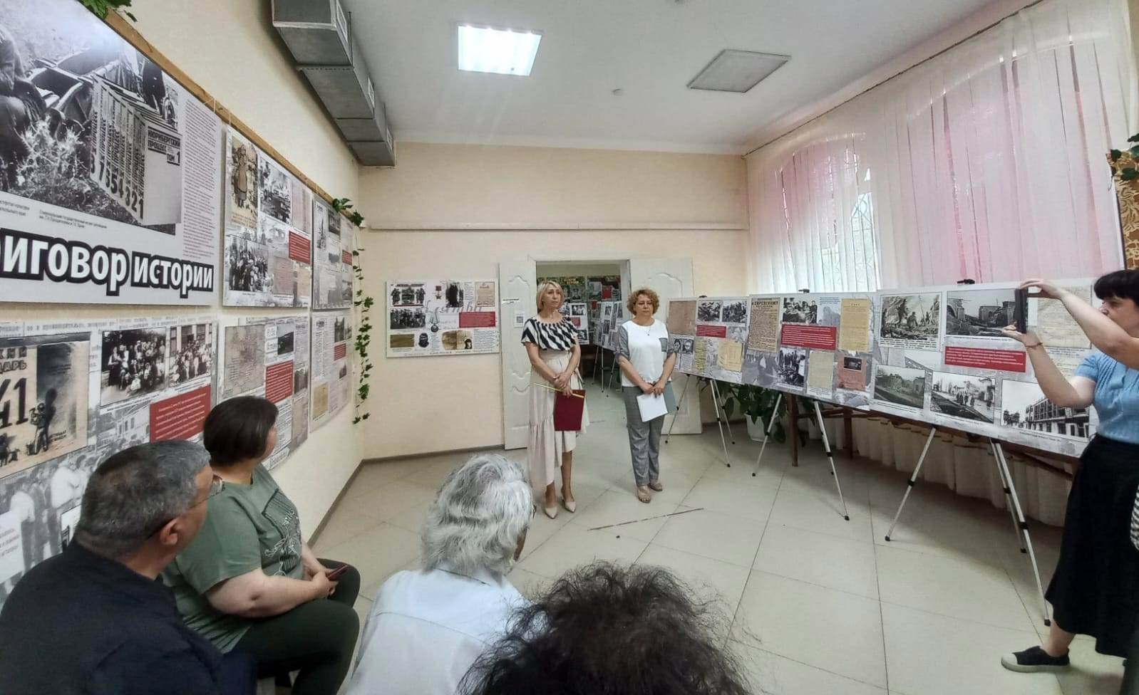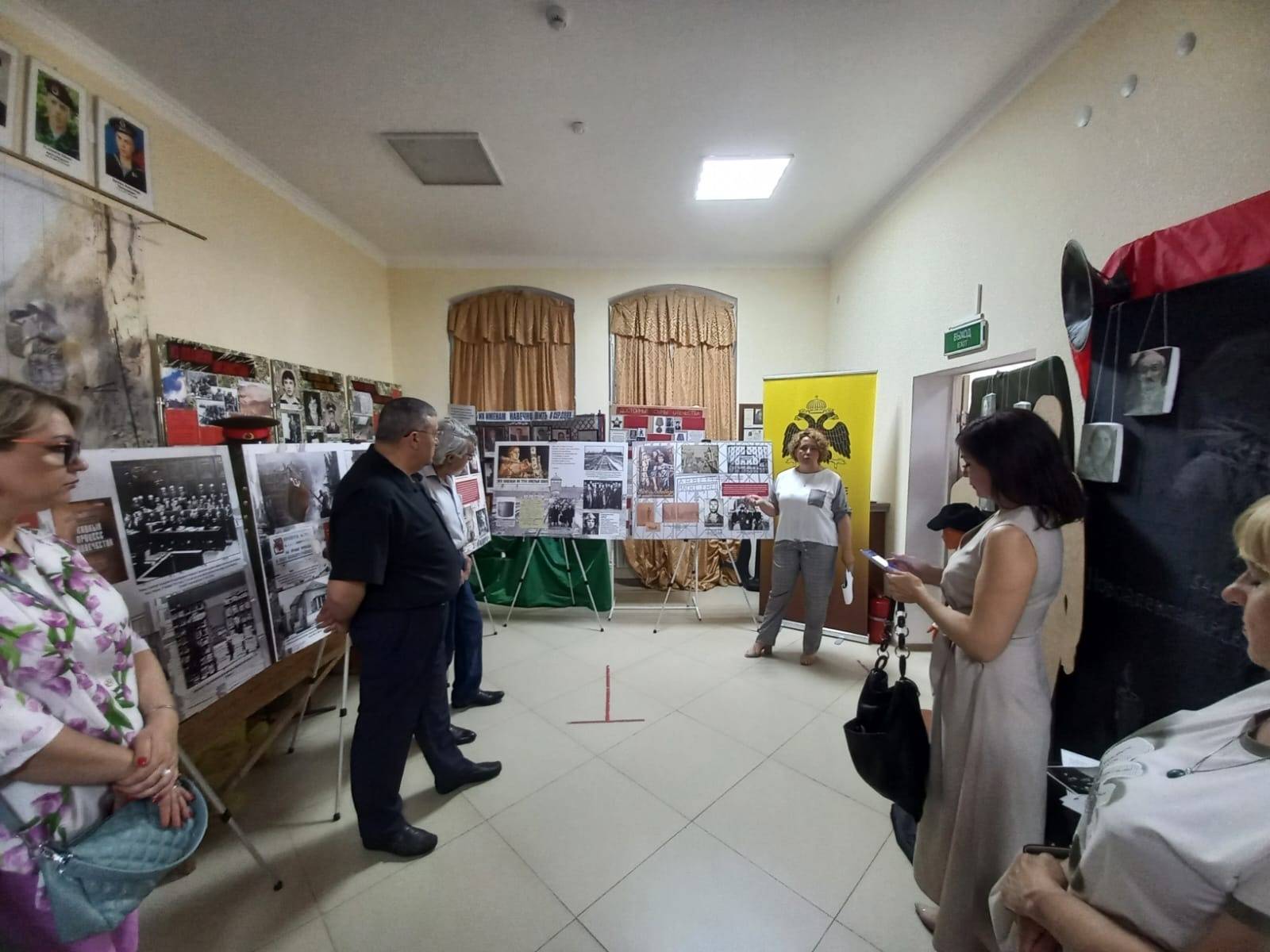 Представили выставку и провели по ней экскурсию М.Ф. Герасимова и Л.А. Скрипникова – сотрудники Новоалександровского музея, члены Ставропольского регионального отделения Российского военно-исторического общества. На выставке представлен широкий спектр фотодокументальных материалов из Государственного архива Ставропольского края (ГАСК), из фондов Ставропольского государственного музея-заповедника имени Г.Н. Прозрителева и Г.К. Праве, Железноводческого краеведческого музея, Невинномысского историко-краеведческого музея, музея истории Изобильненского района, музея Труновского муниципального округа, Управления ФСБ Российской Федерации по Ставропольскому краю и Музея Ставропольской краевой клинической специализированной психиатрической больницы №1.