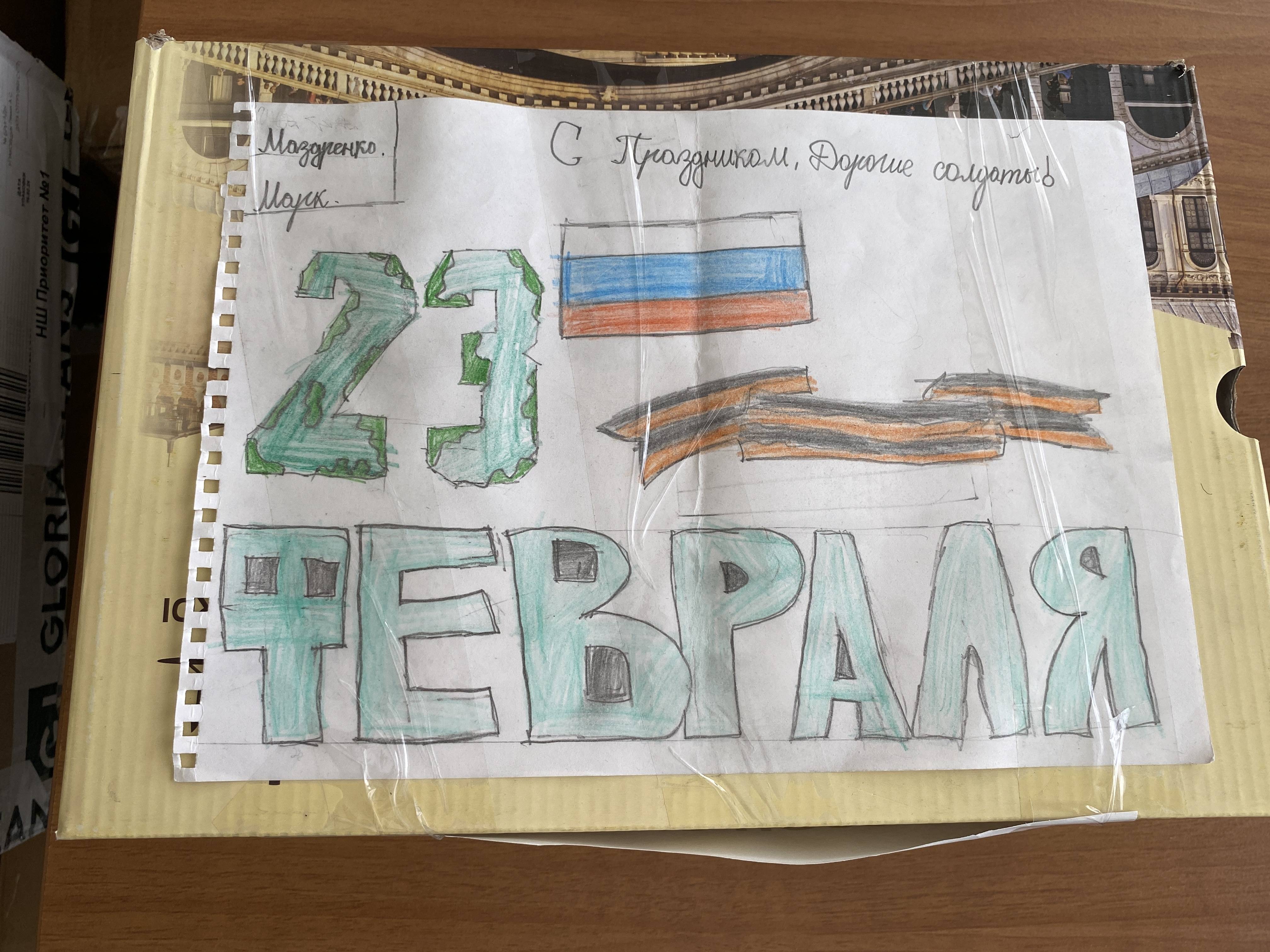 Для бойцов были собраны продукты питания (макароны, рис, крупы, печенье, конфеты, чай, кофе), средства личной гигиены, теплые носки. Школьники сопроводили посылки письмами и рисунками с теплыми пожеланиями и поздравлениями.