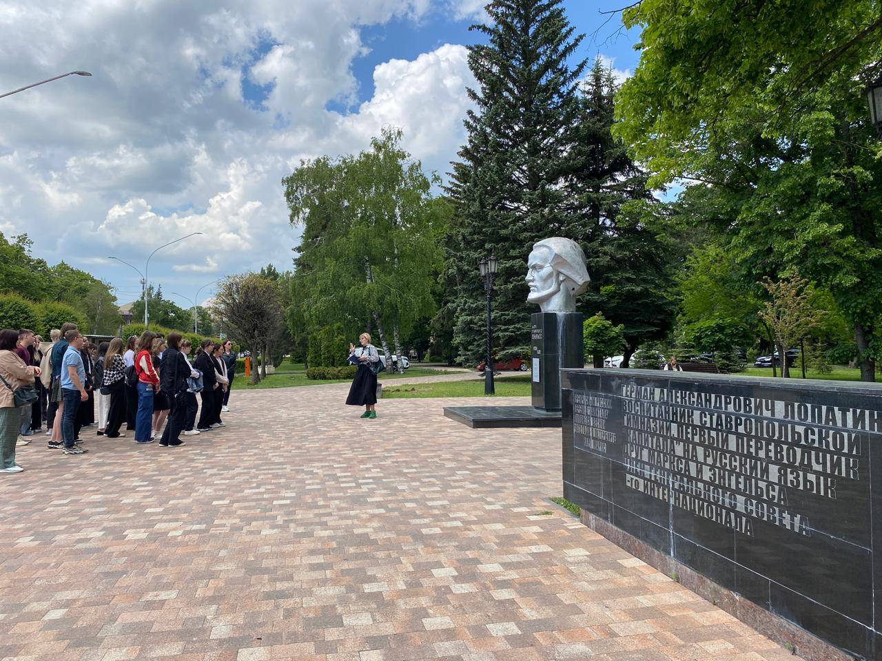Экскурсию провела Гордылева М.Ю., зав. отделом истории СГМЗ, член РО РВИО СК. Школьники окунулись в атмосферу революционного периода и годов Гражданской войны на Ставрополье, узнали о деятельности выдающихся революционеров. В процессе экскурсии, учащиеся посетили целый ряд мемориальных объектов, имеющих отношение к истории Революции и Гражданской войны на Ставрополье, среди которых памятники Г.А. Лопатину, В.И. Ленину, И.Р. Апанасенко, мемориал «Холодный родник», здания администрации города изучаемого периода и другие места города, где в годы Гражданской войны разворачивались ключевые события.