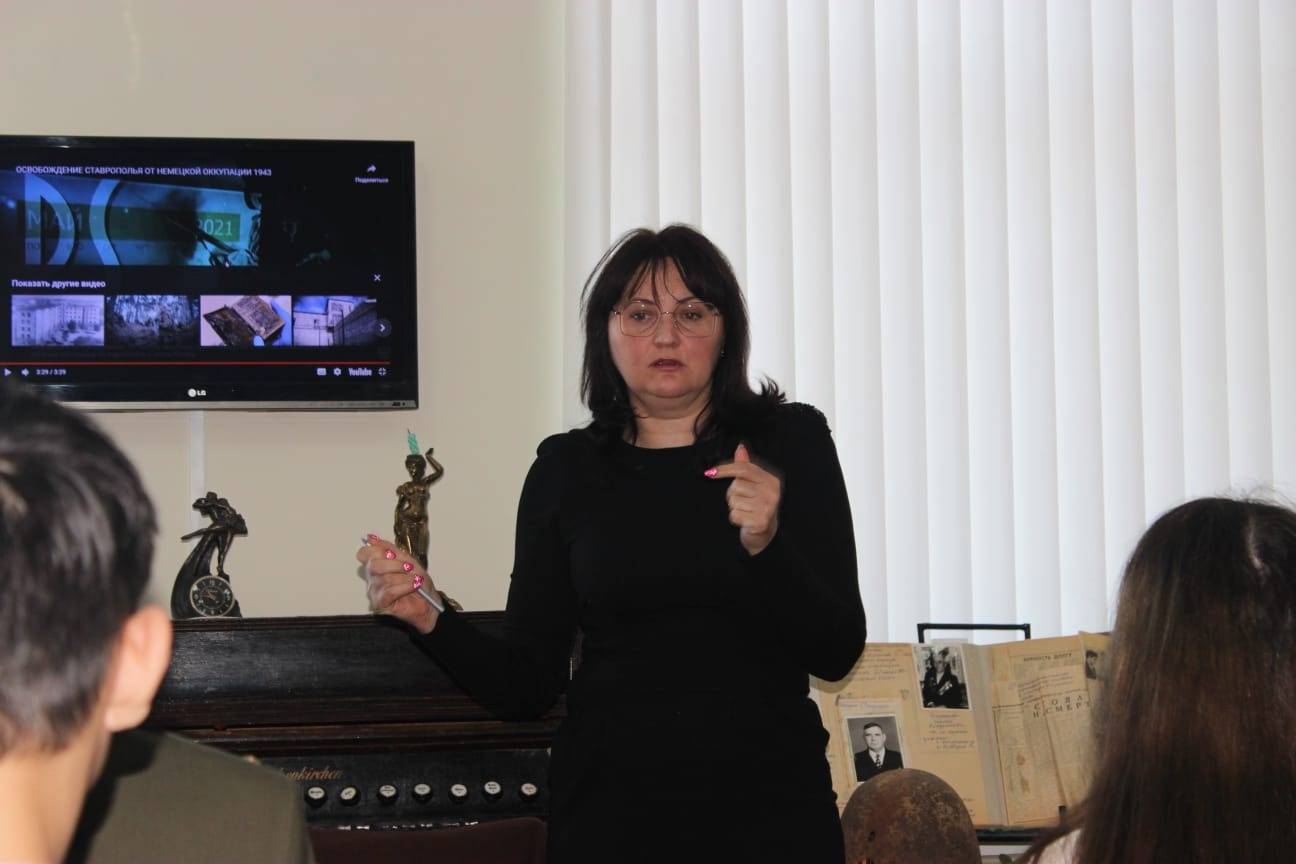 18 января 2023 года главный хранитель фондов Кочубеевского историко-краеведческого музея, член Местного отделения РО РВИО СК в Кочубеевском муниципальном округе (председатель – С.Н. Котов) – Л.Н. Солопова провела часы памяти «Ценою жизни» для учащихся средних классов школ Кочубеевского округа, а также студентов Кочубеевского гуманитарно-технического колледжа Невинномысского государственного гуманитарно-технического института. Она подробно рассказала о почти полугодовой оккупации села, на основе воспоминаний местных жителей, детей войны. Ребята узнали о том, как жили их ровесники, дети 10–12 лет во время войны, как пережили голод, наравне со взрослыми, выполняя всю необходимую работу. Далее гостей музея ждало знакомство с видеохроникой событий того времени, с выставкой, рассказывающей о событиях лихолетья, посредством архивных документов и фотографий. Одним таким памятным документом является снимок 3-й дивизии 935 артиллерийского полка 381 Ленинградской Краснознаменной стрелковой дивизии, участвовавшей в освобождении Ставрополья. В ее составе служили и их земляки. Также Л.Н. Солопова рассказала ребятам о земляках, награжденных медалью «За оборону Кавказа».