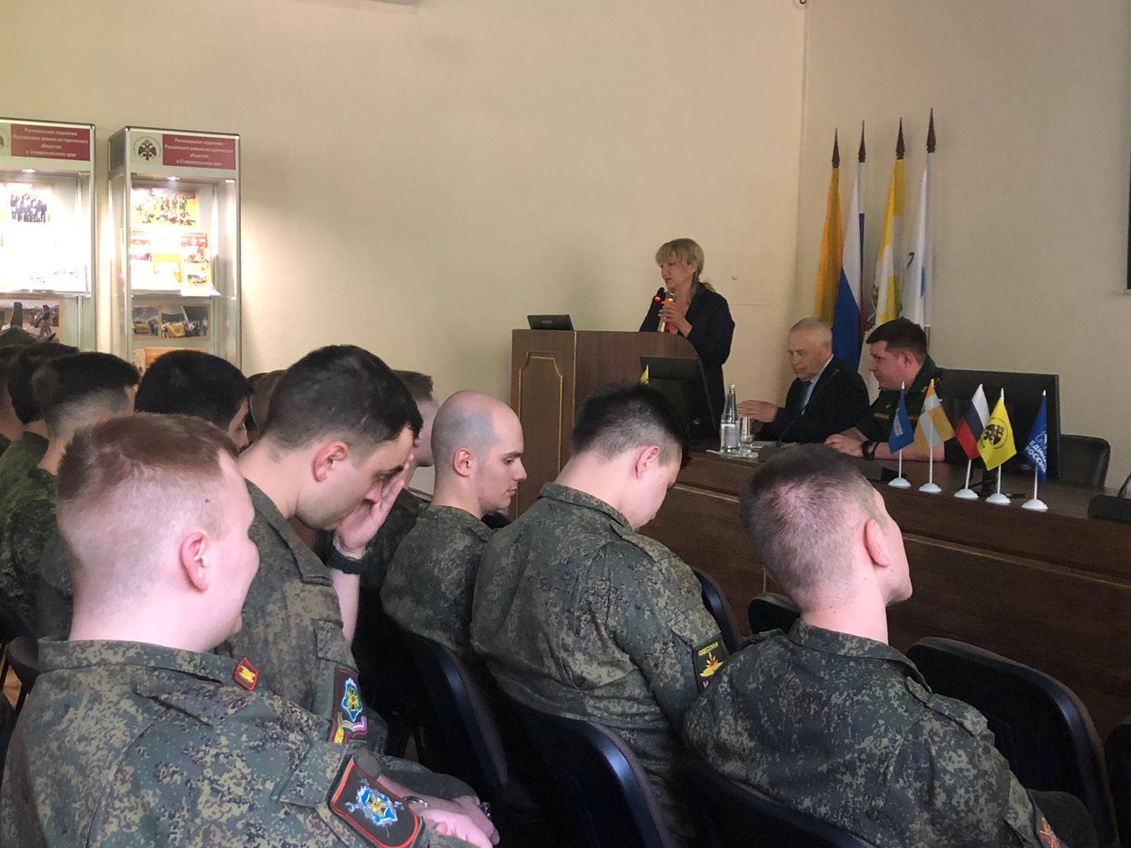 Ведущей круглого стола стала Стрекалова Е.Н., к.и.н., доцент кафедры истории России СКФУ, старший научный сотрудник отдела военной истории и патриотической работы СГМЗ, член РО РВИО СК.
