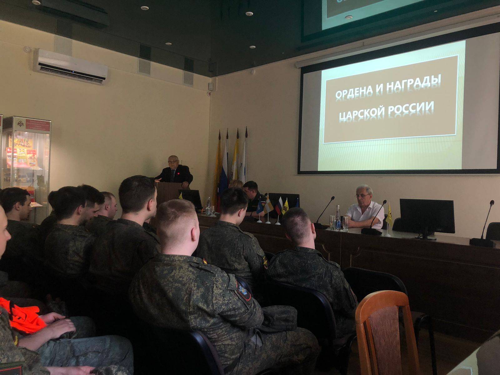 Основным докладчиком выступил Н.Д. Судавцов. Он рассказал об истории учреждения и принципах награждения орденов и медалей царской России: о первом российском ордене – Святого Апостола Андрея Первозванного, о высшем дамском ордене – Святой великомученицы Екатерины, о боевом ордене – Святого Георгия, об орденах Святого равноапостольного князя Владимира, Святого князя Александра Невского, Святой Анны, об иностранной награде – ордене Святого Иоанна Иерусалимского, о польском ордене Белого Орла, а также о самом младшем среди русских орденов – ордене Святого Станислава.