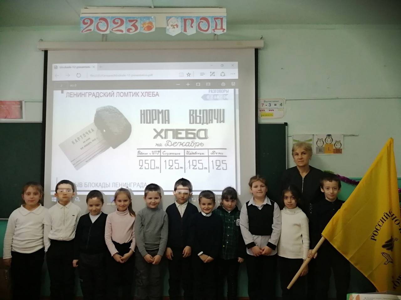 Уроки прошли для обучающихся 1-2 классов под руководством педагогов – Е.И. Мацак (член РО РВИО СК) и Е.А. Горох. В ходе мероприятия вспомнили героические страницы истории – блокаду Ленинграда и ее прорыв, говорили о Ладожском озере – дороге жизни, «ленинградском ломтике хлеба», познакомились с отрывками из дневника Тани Савичевой, жившей в Ленинграде во время блокады.