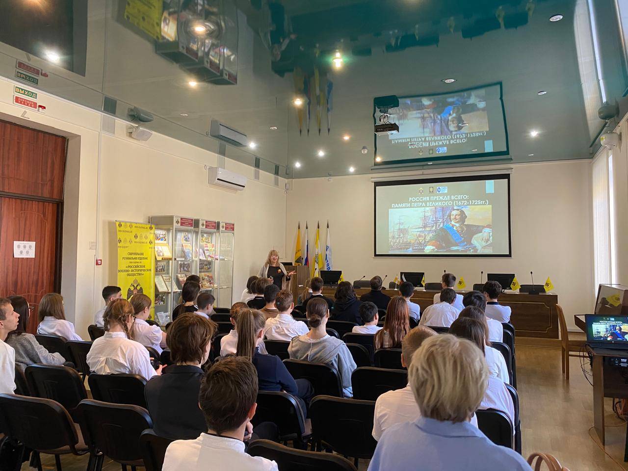 8 февраля в России отмечается День памяти Петра I. В честь этой памятной даты Ставропольское региональное отделение Российского военно-исторического общества (РО РВИО СК) организовало ряд мероприятий для школьников г. Ставрополя. Одним из них стал исторический семинар «Россия прежде всего: памяти Петра Великого (1672–1725)», прошедший 13 февраля 2025 г. в конференц-зале РО РВИО СК.