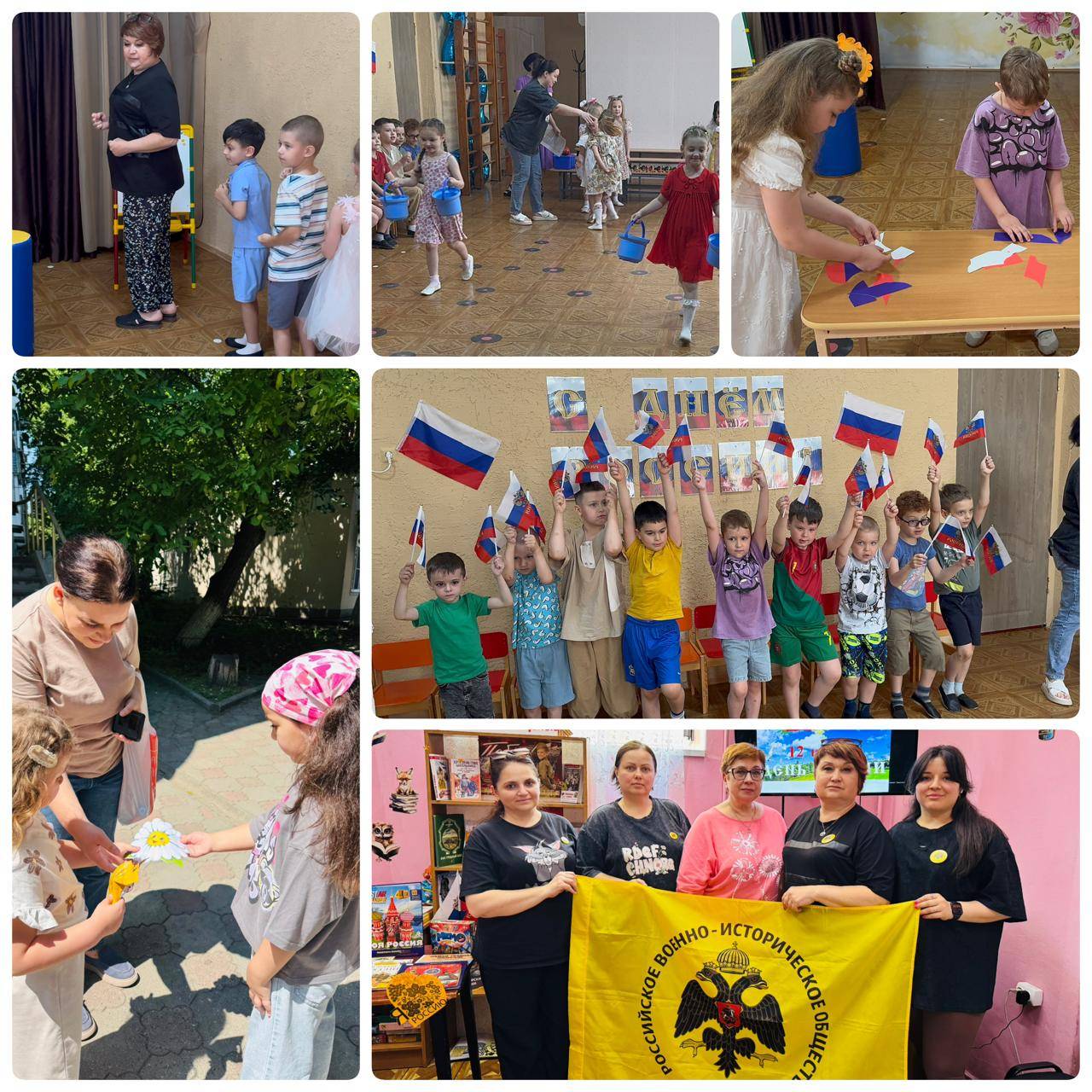 11 июня 2025 г. педагоги МКДОУ детский сад №95 «Ласточка» г. Минеральные Воды, члены Местного отделения РО РВИО СК в Минераловодском муниципальном округе (председатель – Акопян М.Б.), провели для воспитанников мероприятие «Люблю тебя, моя Россия!». Дети совершили виртуальное путешествие по стране, отгадывали загадки, играли в народные игры и вспоминали официальные и неофициальные символы нашего государства. Затем они посетили детскую библиотеку, где для них провели познавательную викторину. По пути ребята дарили прохожим бумажные ромашки – символ России.