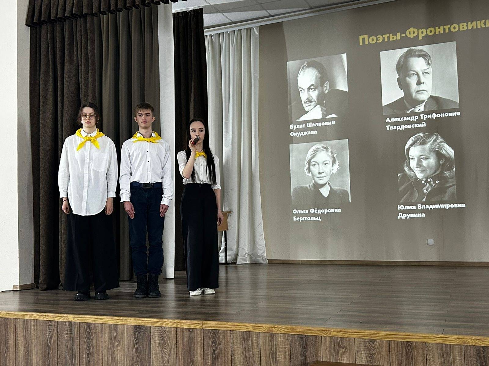 Так, 10 и 21 февраля 2023 года на базе МБОУ СОШ №7 г. Ставрополя воспитанники клуба «Юный патриот» РО РВИО СК, учащиеся 10 «В» класса под руководством Е.А. Лифановой провели литературно-музыкальную композицию «Патриотизм в классической и современной русской литературе» для учащихся старших классов. Со сцены прозвучали отрывки из произведений А.С. Пушкина, М.Ю. Лермонтова, Н.А. Некрасова, А.А. Блока, А.Т. Твардовского, О. Берггольц, М. Джалиля, Б. Окуджавы, К. Симонова.